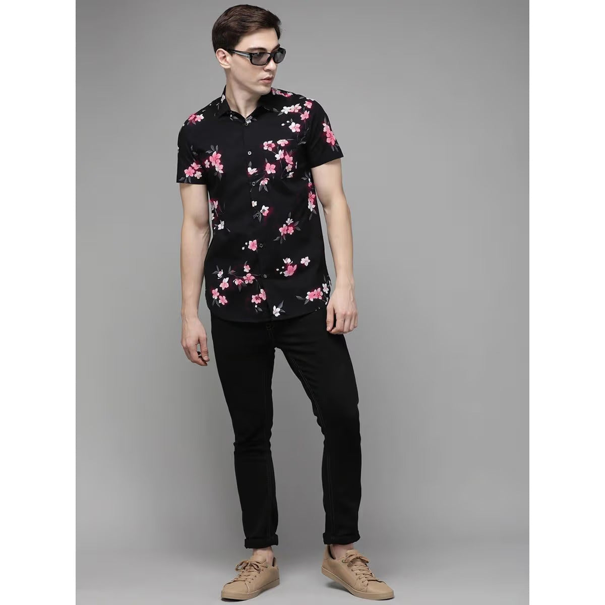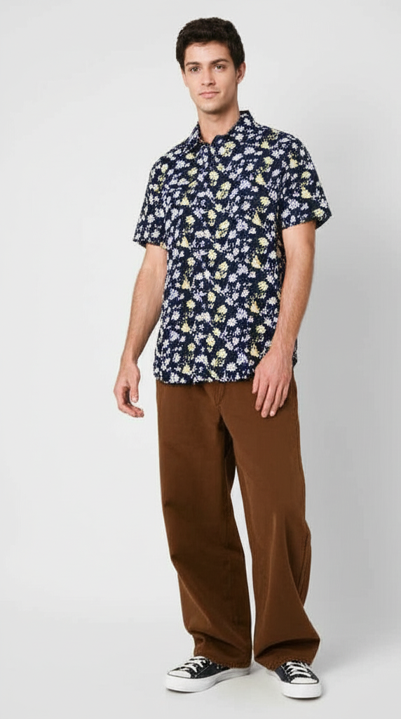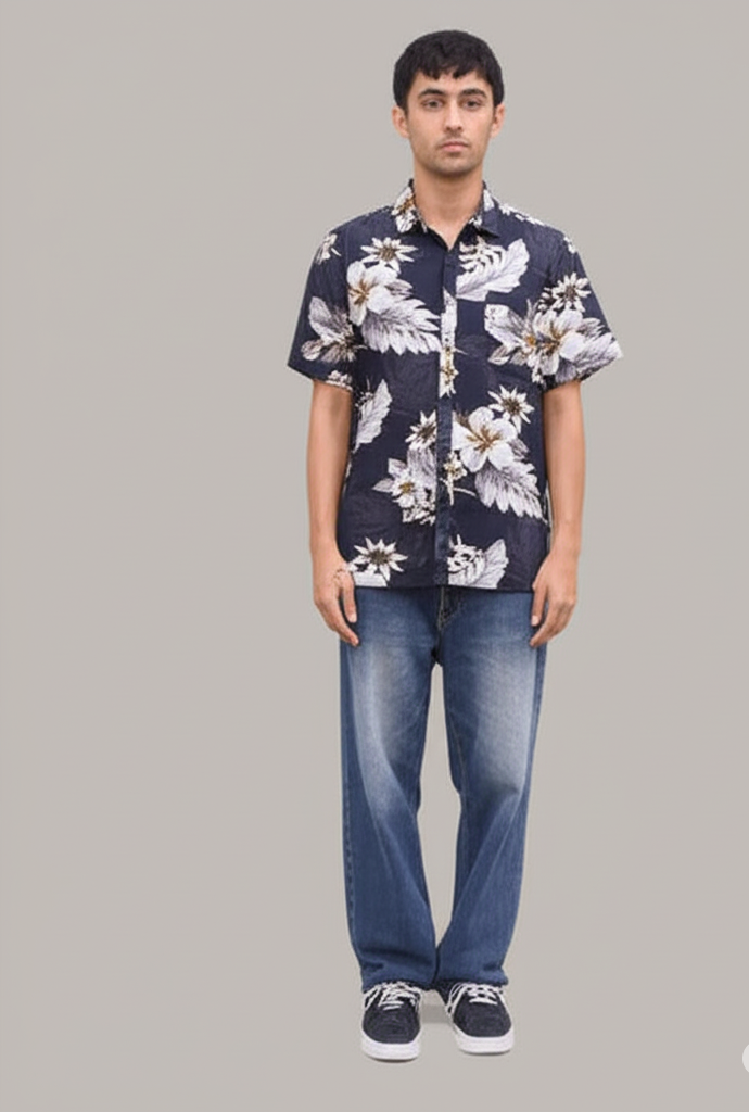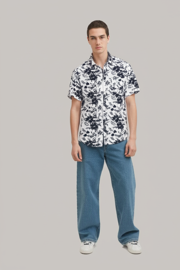 Denim & Flower Men’s Half-Sleeve Rose Print Shirt – Stylish Floral Casual ShirtAED 59.00AED 99.00
