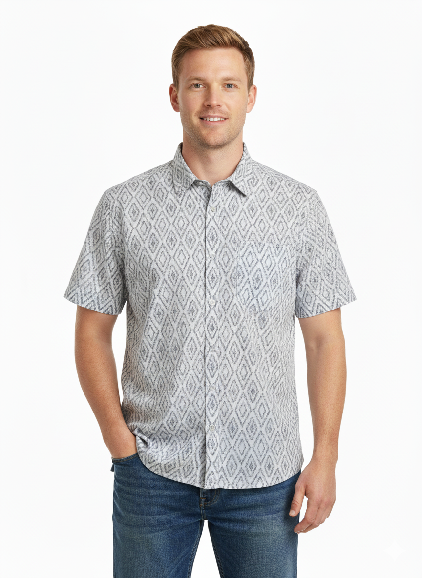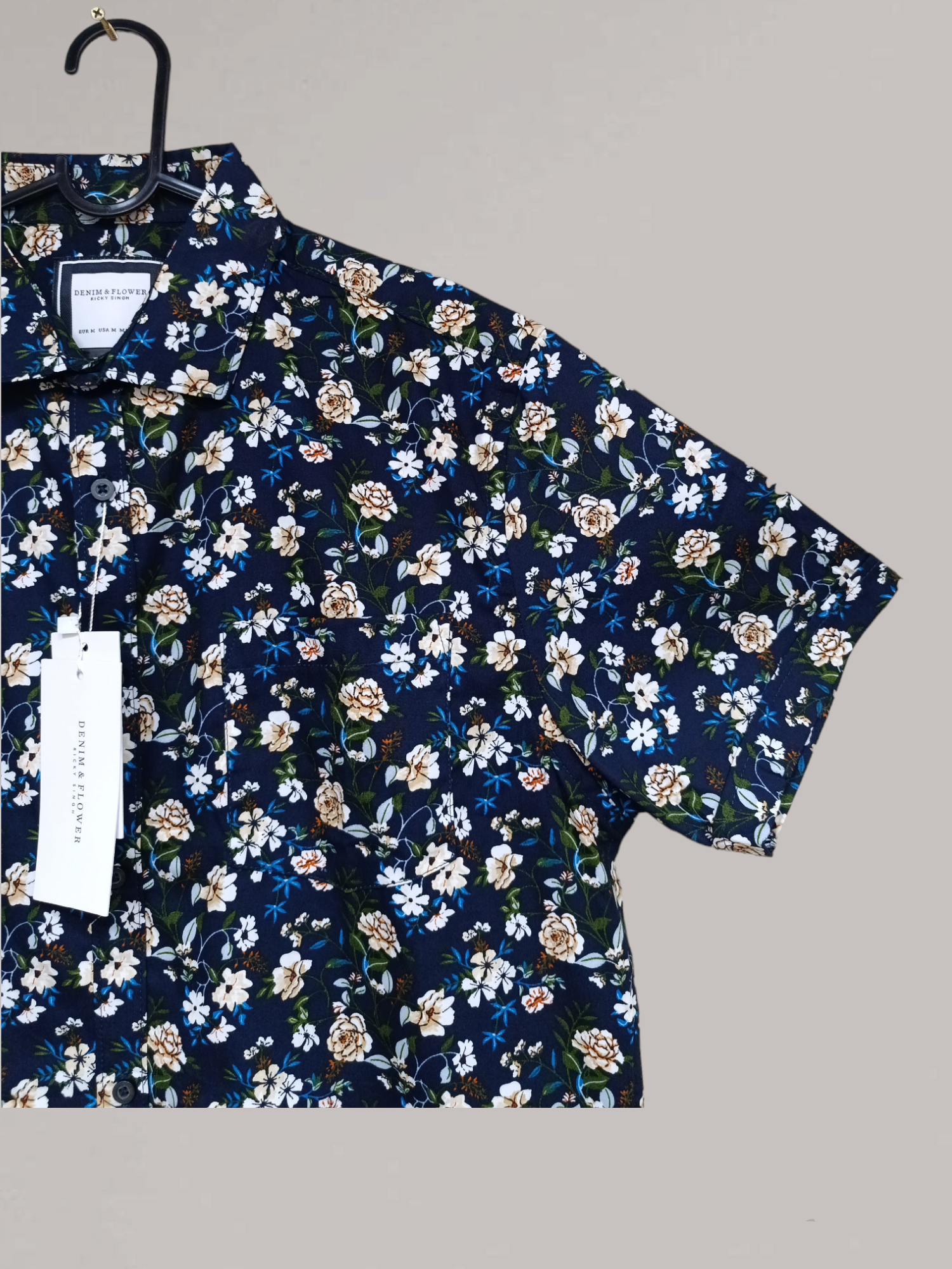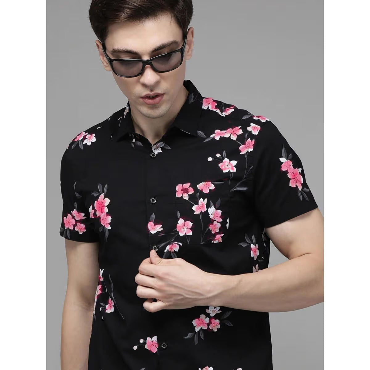 Denim & Flower Men’s Half-Sleeve Rose Print Shirt – Stylish Floral Casual ShirtAED 59.00AED 99.00