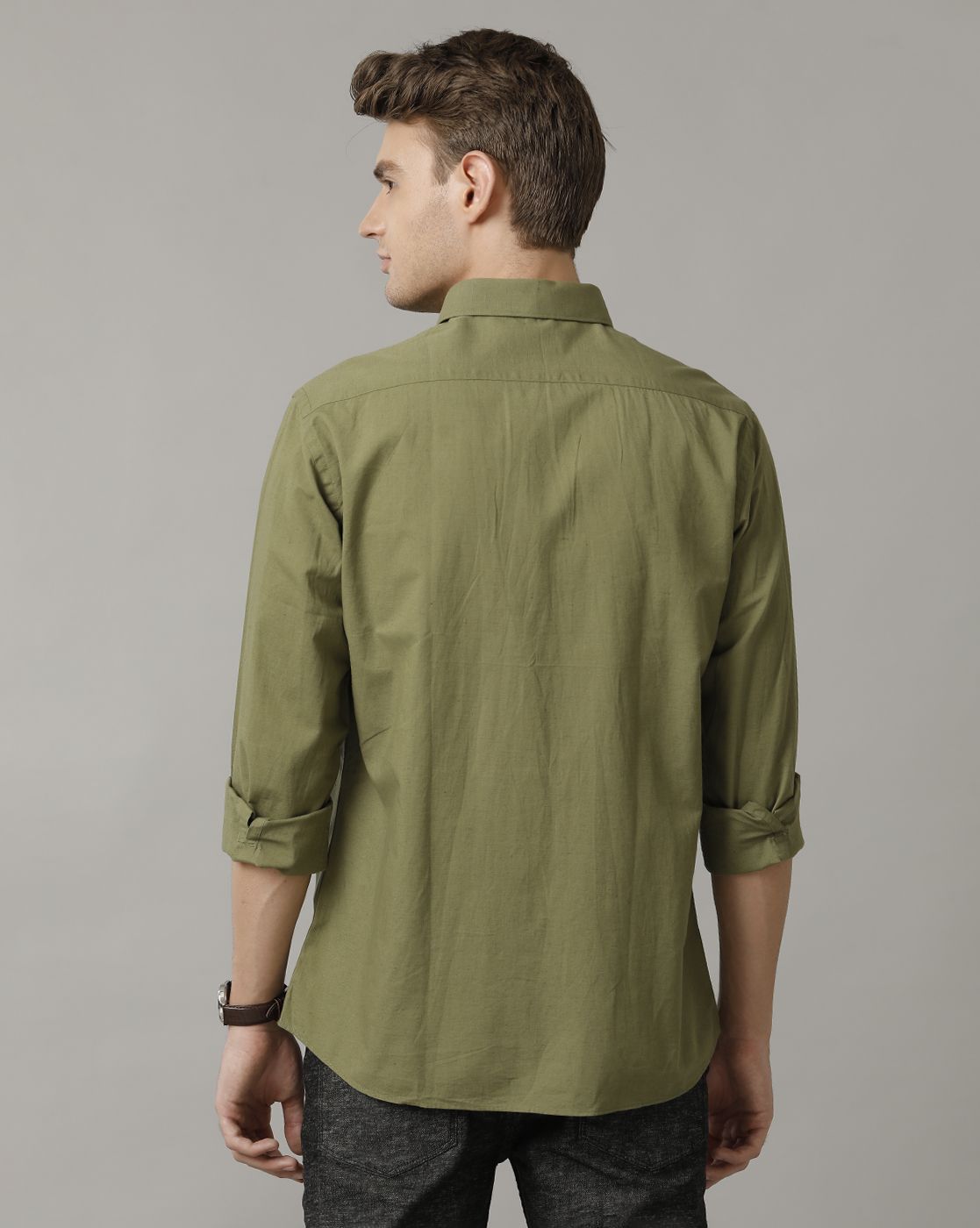 CAVALLO BY LINEN CLUB MEN'S COTTON LINEN GREEN SOLID REGULAR FIT FULL SLEEVE CASUAL SHIRTAED 99.00AED 119.00