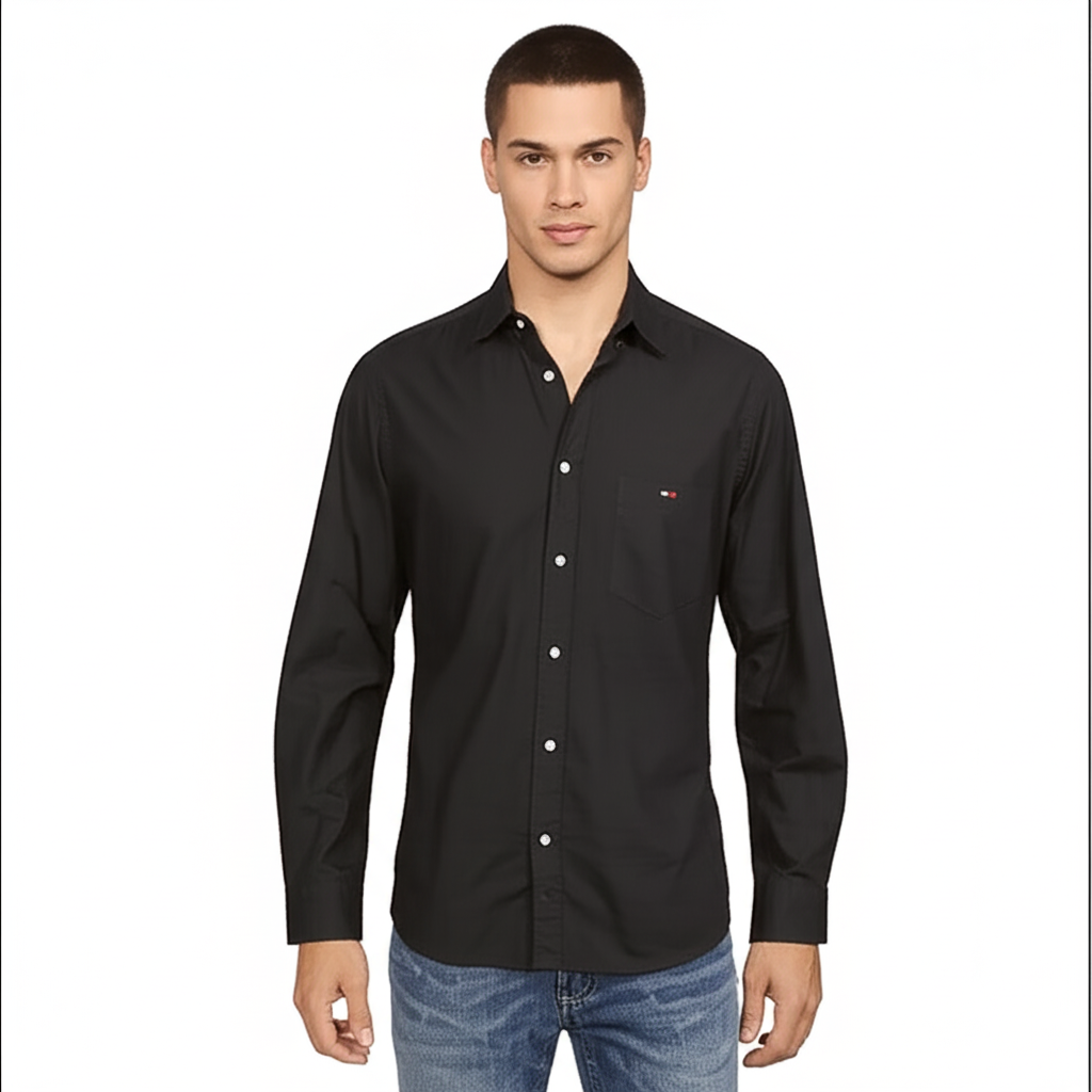 Tommy Hilfiger Men’s Long Sleeve Shirt, BLACK
