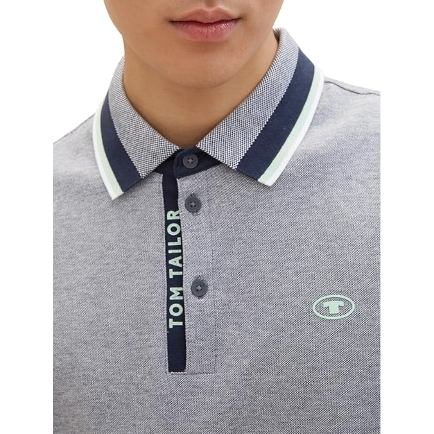 TOM TAILOR Polo Shirt - White Mint Twotone