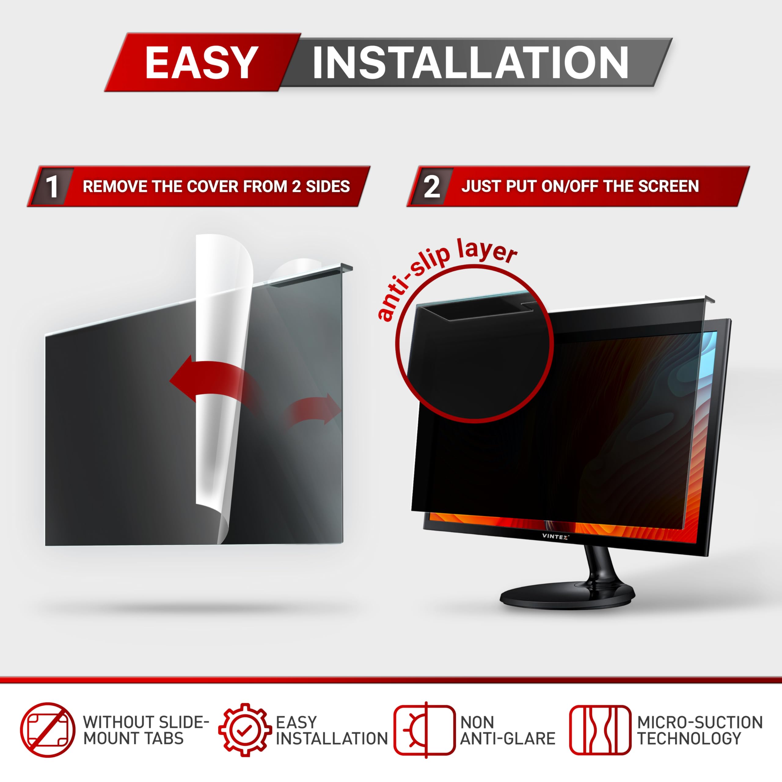 VINTEZ Universal 26" - 27" Computer Privacy Screen Filter for Widescreen Computer Monitors - (635 x 415 mm)AED 123.75AED 369.00