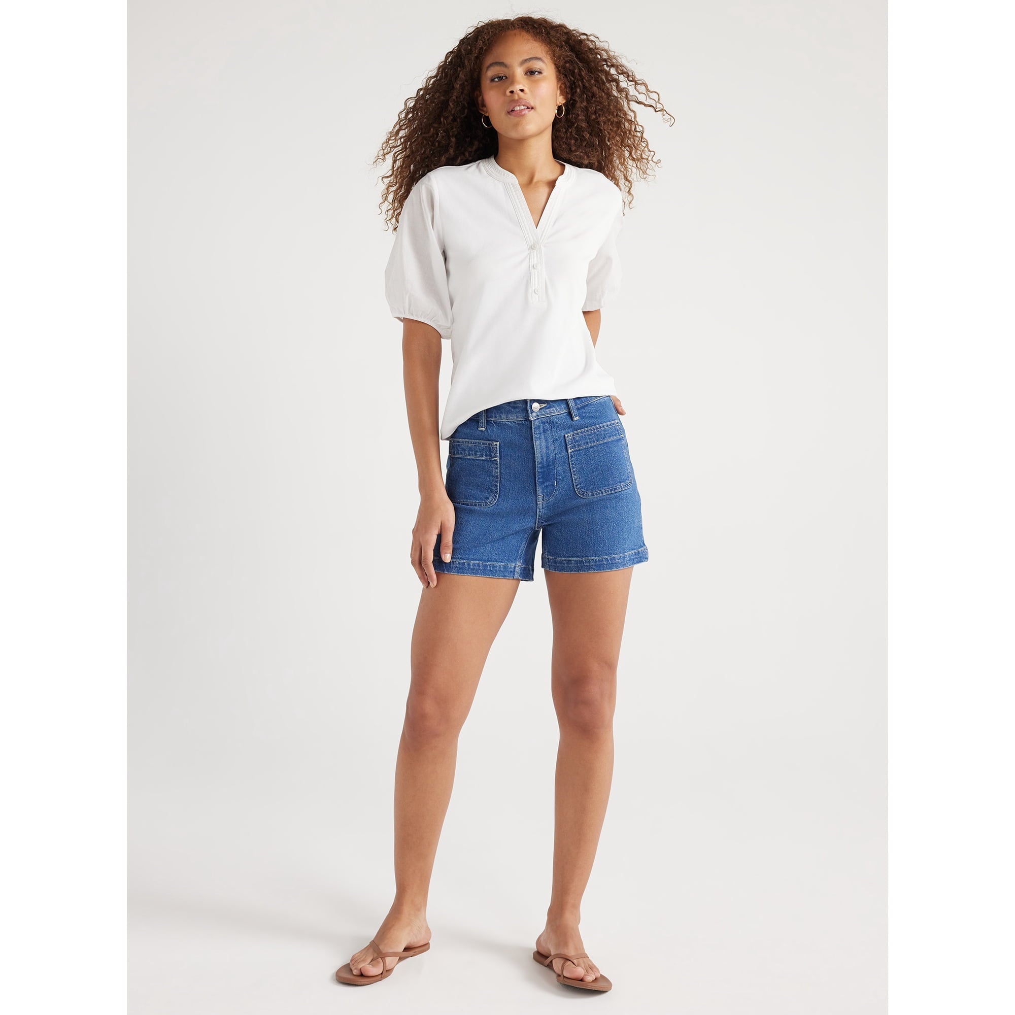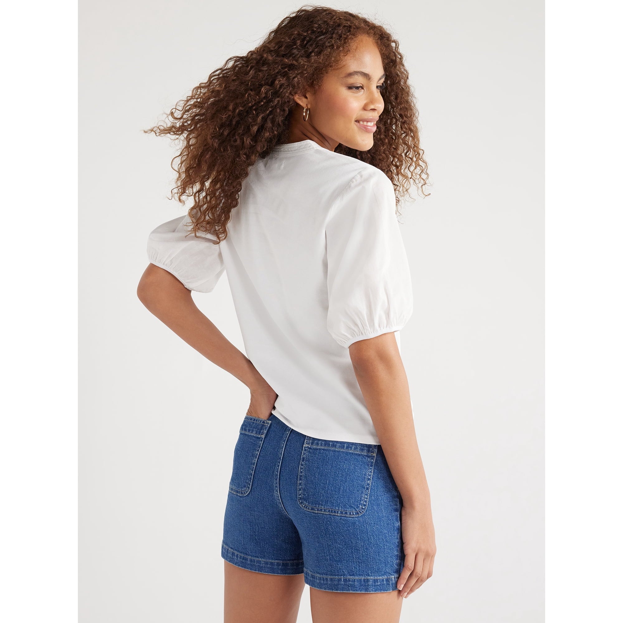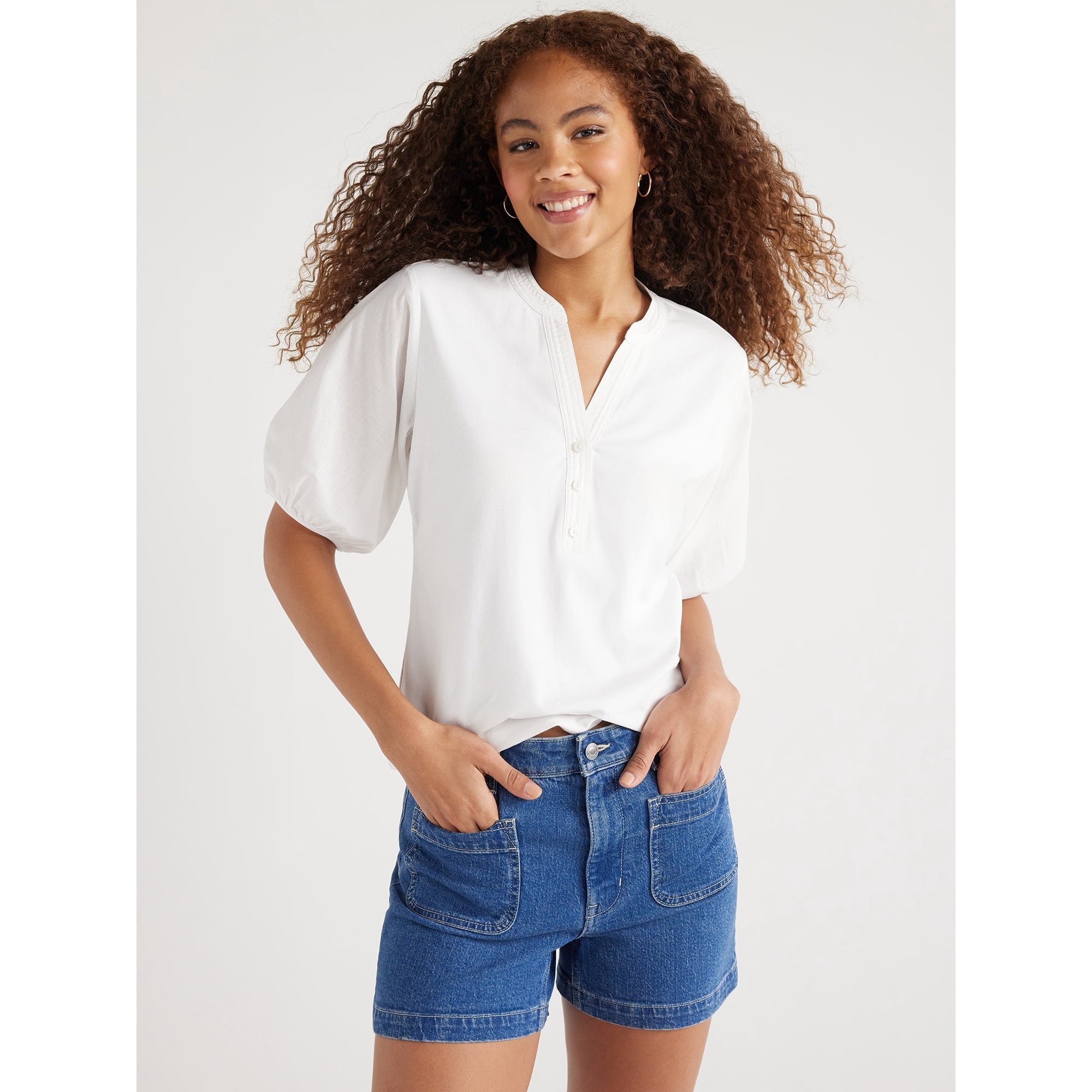 SIZE: XS - Free Assembly Women’s Henley Tee with Short Puff SleevesAED 98.75AED 143.00