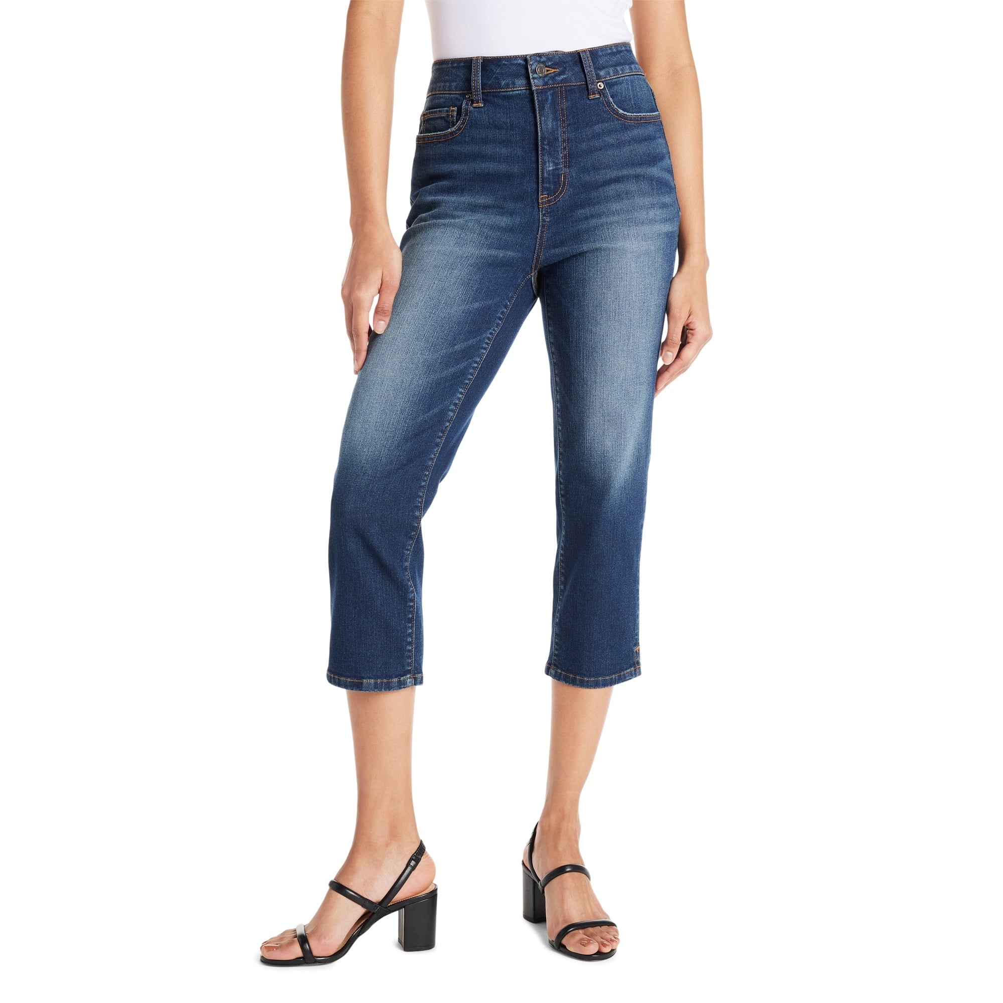 SIZE: XS(0-2) - Time and Tru Women's Slim Fit Capri Jeans with Side Slit Hem, 23" InseamAED 98.75AED 152.00