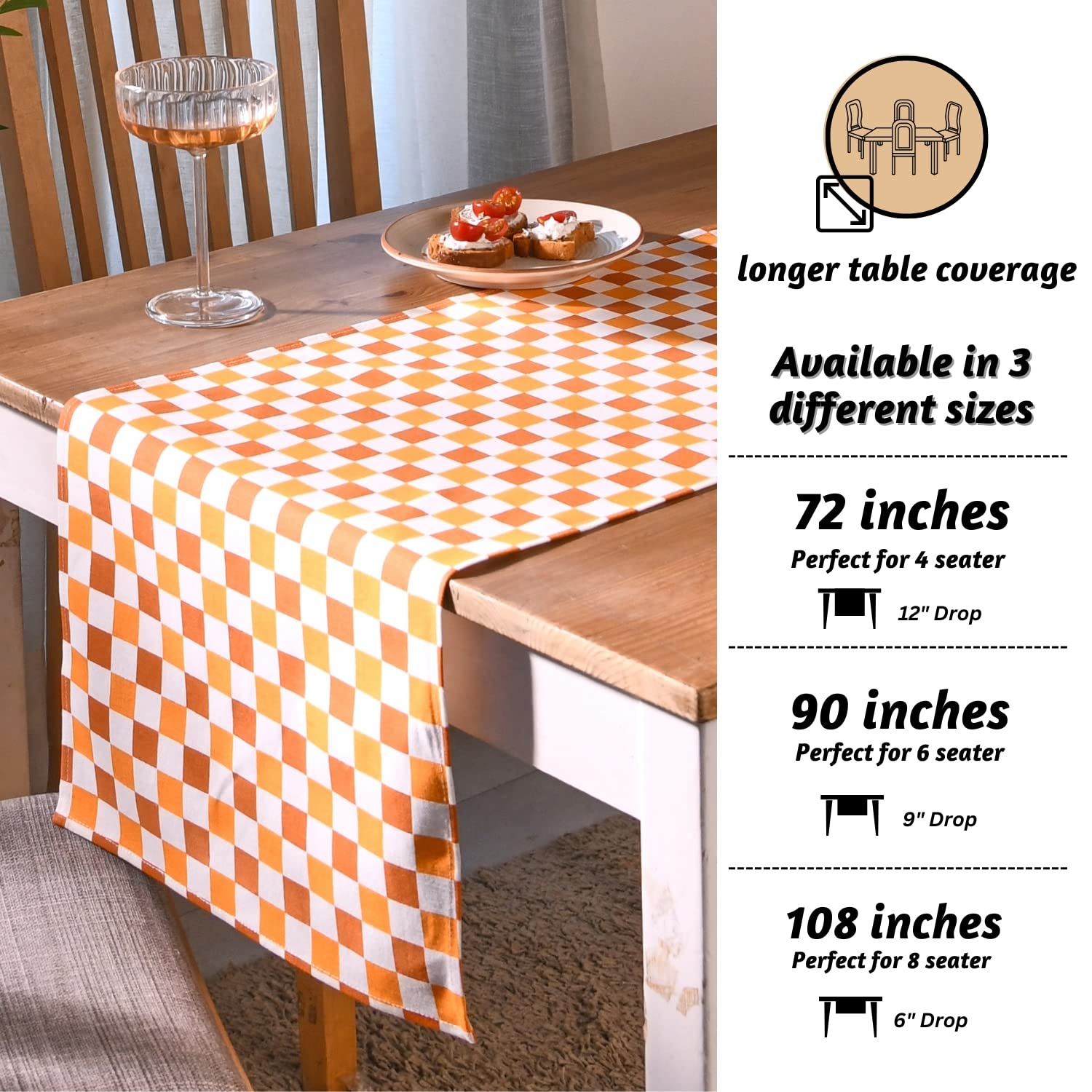 - DESIGN & QUALITY: This table runner fall theme is made of 100% cotton and comes in a standard size of 35.56 cm wide and 274.32 cm long. These decorative table runners exude elegance when placed on any table and adds a bohemian touch with its frill detailing.