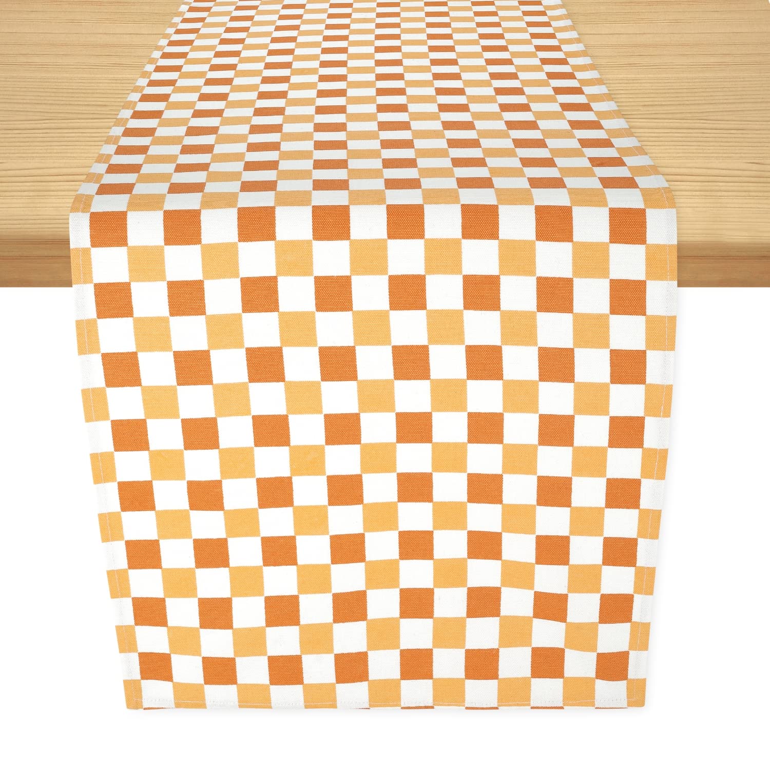 - EASY TO WASH: This burnt orange table runner is machine washable in cold water with like colors. The colours of this coffee table runner do not fade and last for years to come.