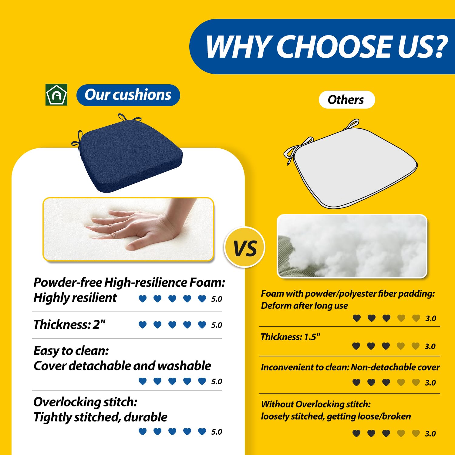 - Non-slip Bottom & Ties: The chair cushion has a bottom with plenty of non-slip dots and also two ties to keep it absolutely in place during use. In the beginning, the bottom has an adequate non-slip effect and for aesthetic purposes, you can remove the ties (removable). But as is known to all, the anti-slip particles may gradually age after long use, affecting the non-slip effect. Then you can add the ties and fasten the cushion to your chairs.