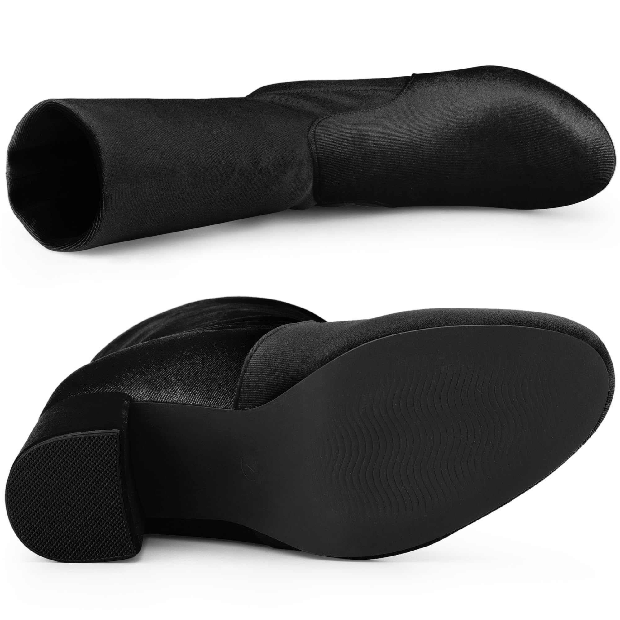 - Foldable Shaft, Block Heel, Round Toe, Slip On, Mid Calf/Ankle Boots; Sock Boots for Women