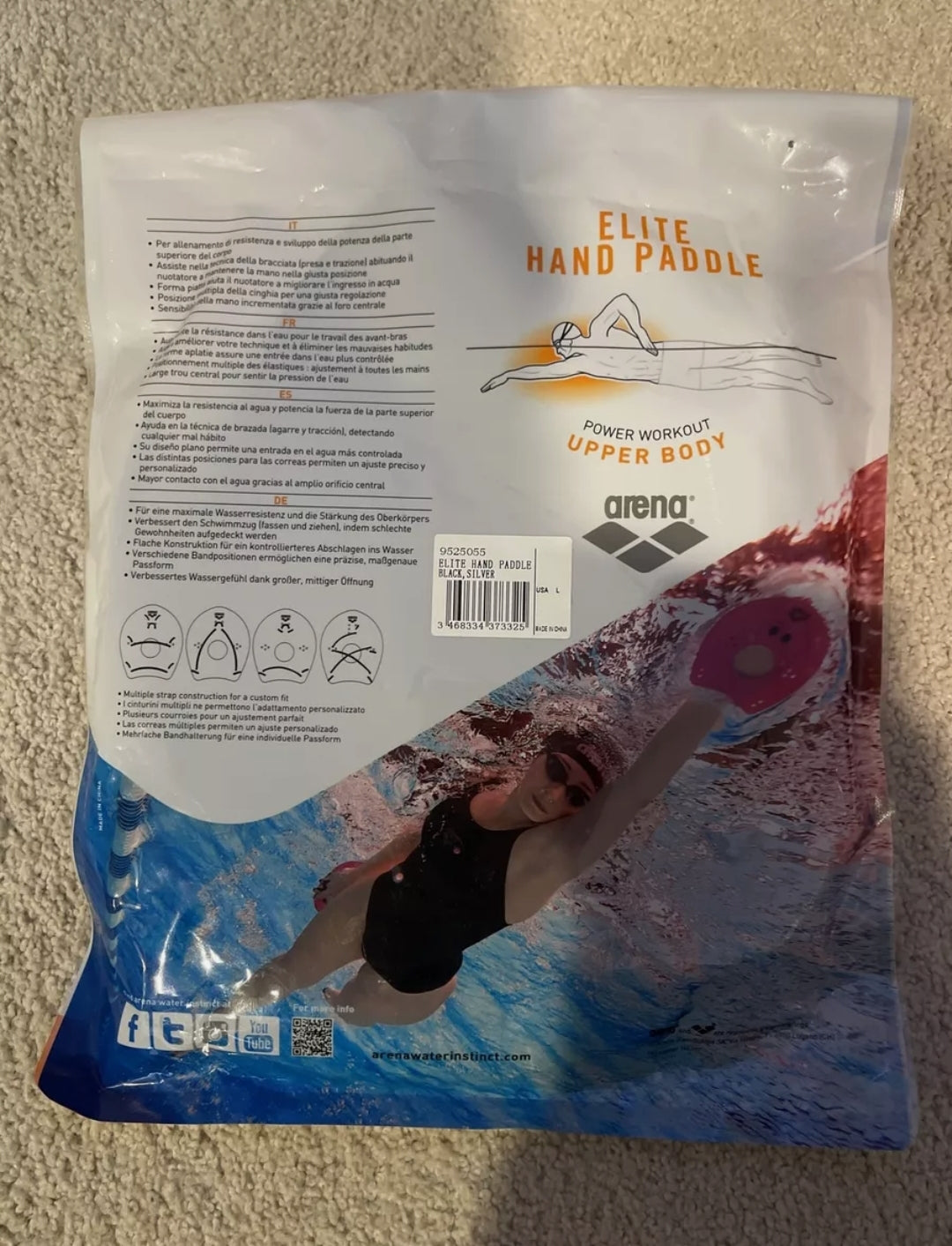 Arena Elite Hand Paddle Size Large Black/Silver 95250-55