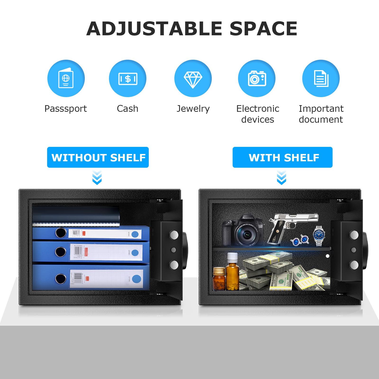 Bonsaii Safe, 0.6 Cubic Safe Box with Electronic Keypad, Removable Shelf, for Valuables Jewelry and Documents in Home, Hotel, or Business, 25 D x 35 W x 25 cm H