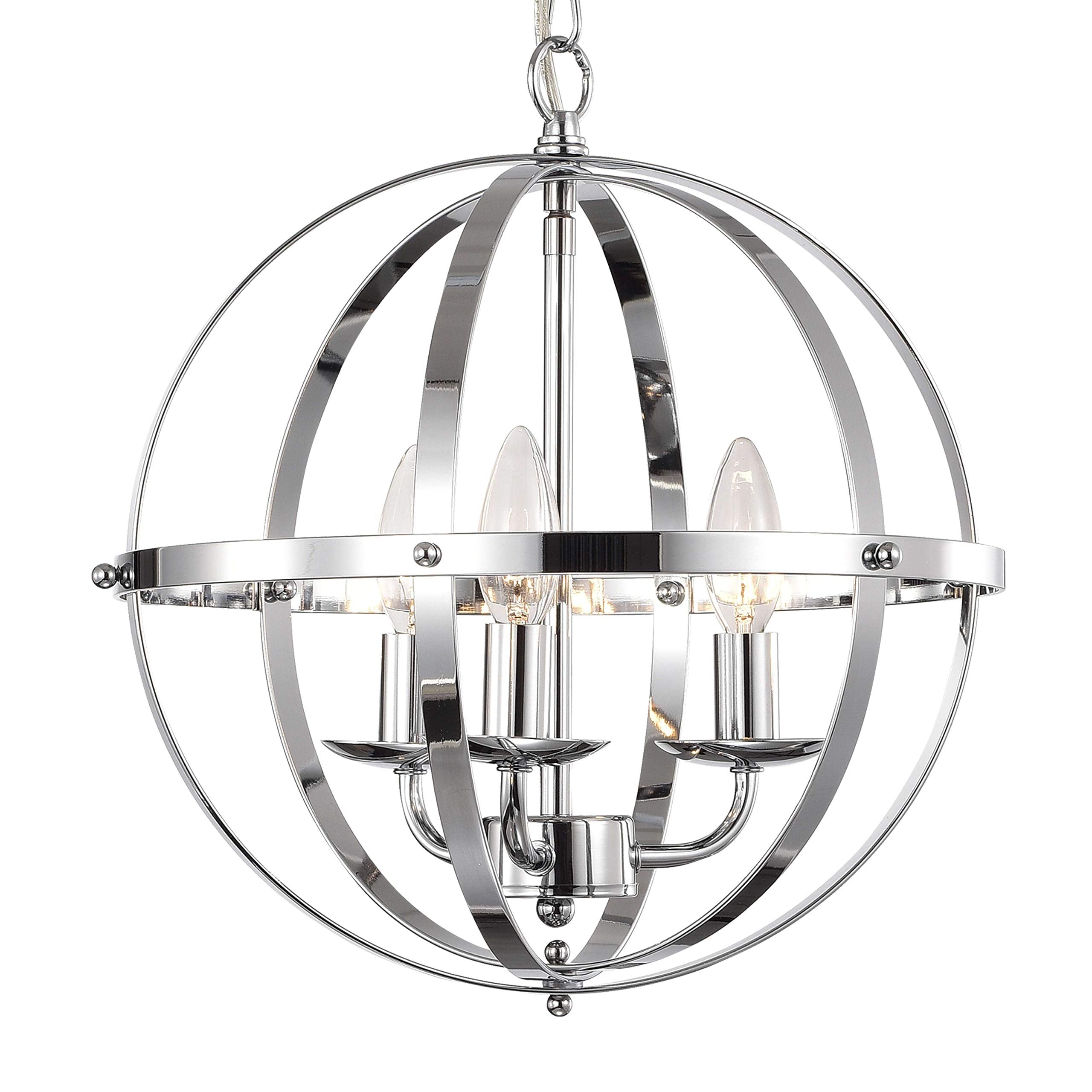 Details: Evoking industrial vintage styling, Three-Light Chandelier adds a casual touch to any decor. A charming, in this open sphere pendant design. Chrome finish with highlights adds rustic appeal.