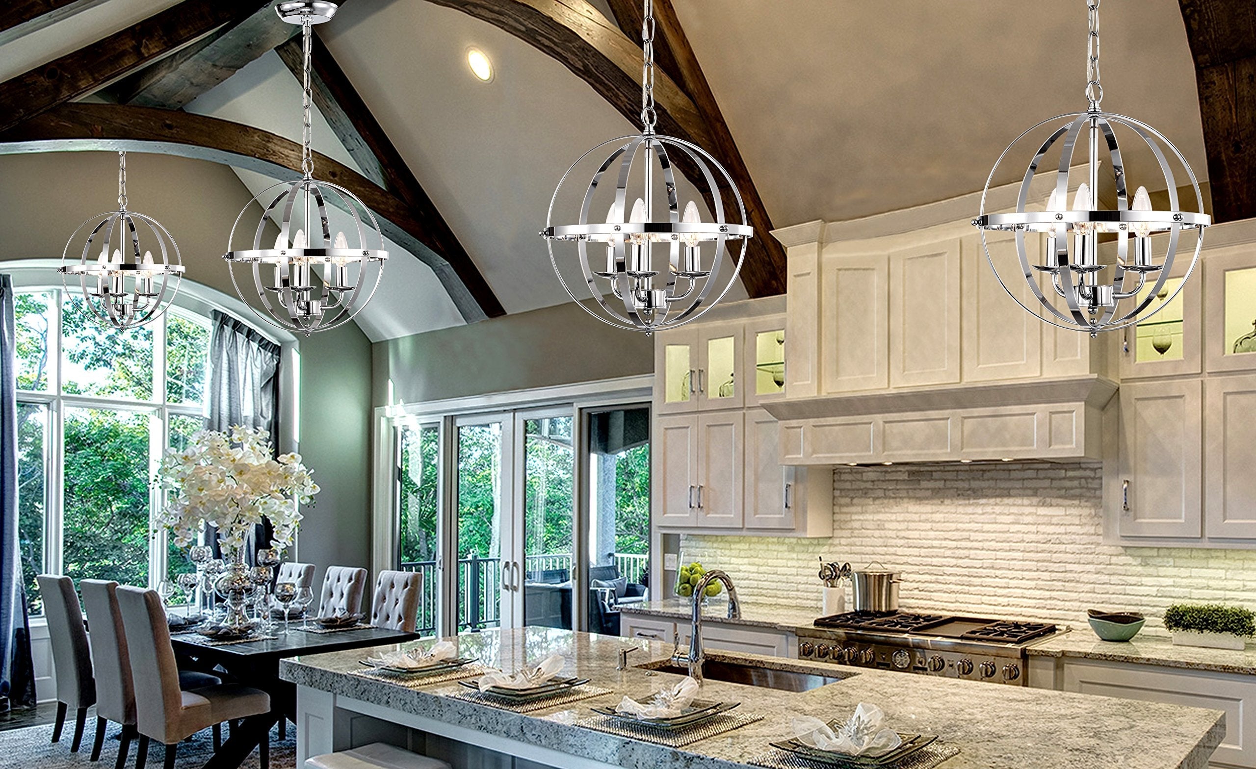 - Recommended Room:Orb chandelier is good for a space 100 sq ft to 150 sq ft ; Ideal for living room/dining room/kitchen island/foyer/bar/office and more