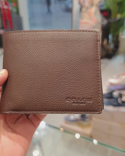 Original -Coach Men's ID Billfold Wallet In Signature Canvas, DARK BROWN- no box