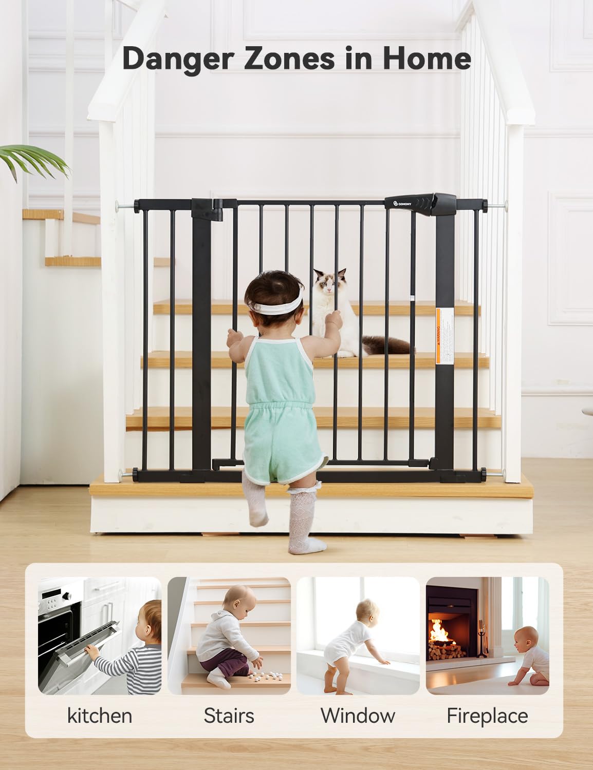 - Sturdy Construction - Heavy duty steel frame pet gate can defend against up to 100-pound impacts by your pets. Never worry your pets jump over the gate.