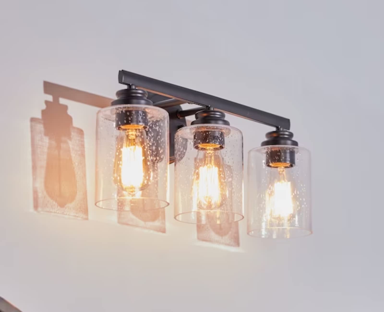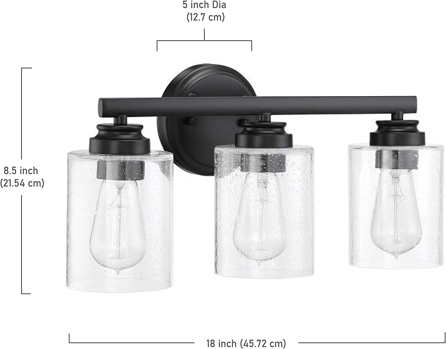 - DETAILS: Flat Black Finish with Clear Seeded Glass Shade