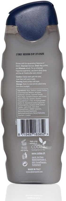 Denim Performance Detox Body and Face Wash | X 3 Triple Rejuvenating | Charcoal | Green Tea | Minerals 400 ml shower gel
