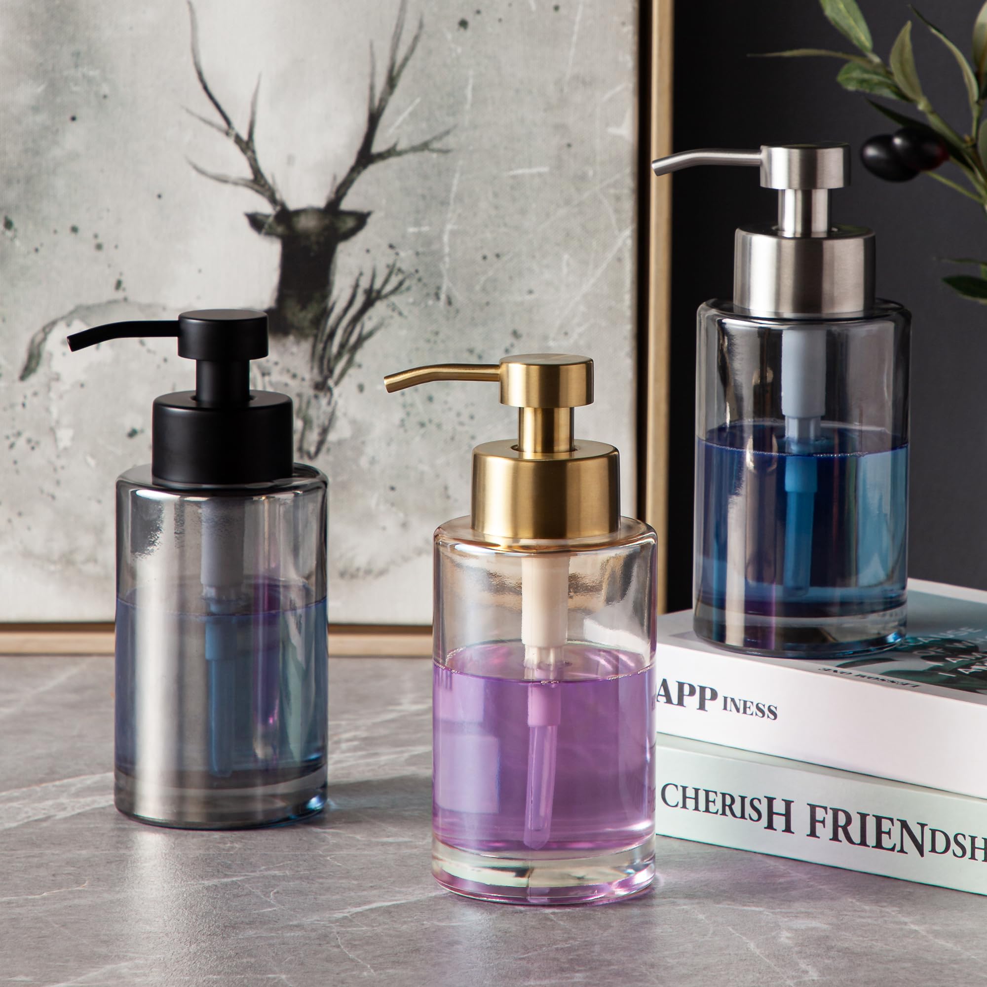- Hand Glass Soap Dispenser-Our gold bathroom soap dispenser is made from Premium thick glass with a rust-resistant 304 stainless steel pump. It's eco-friendly, lead-free, reusable and has a wide-mouth design for easy soap refilling.