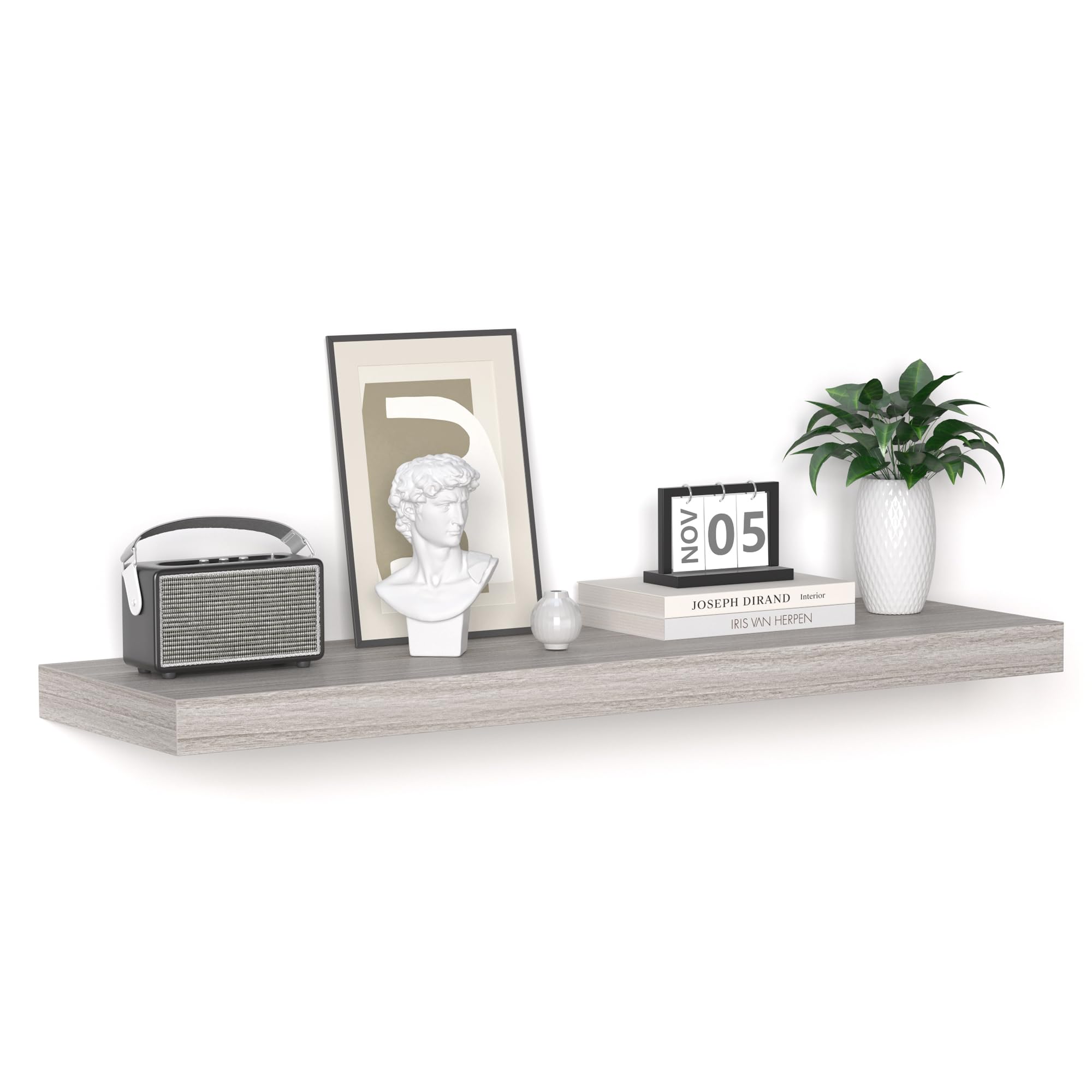 - Rustic & Modern Wooden Floating Shelves - Our shelf is made of durable engineered wood with a natural wood grain finish for a rustic feel. Matte surface makes it modern and minimalist look. It can be mounted and decorated on every wall of your home, perfect for various scenes, whether display your collection or storage.