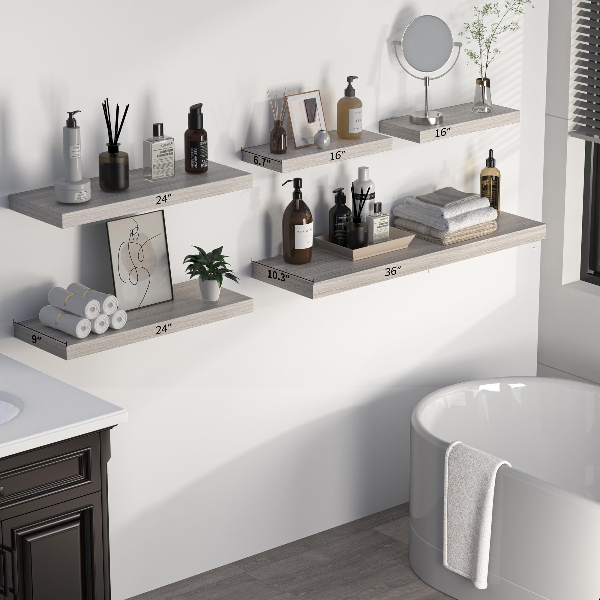 Floating Shelves - 10.3 Inch Deep Wall Shelf for Decor & Storage - Wall Mounted Display Shelving with Invisible Heavy-Duty Metal Bracket - 36" W x 10.3" D x 1.8" H - Set of 1 - Rustic Grey