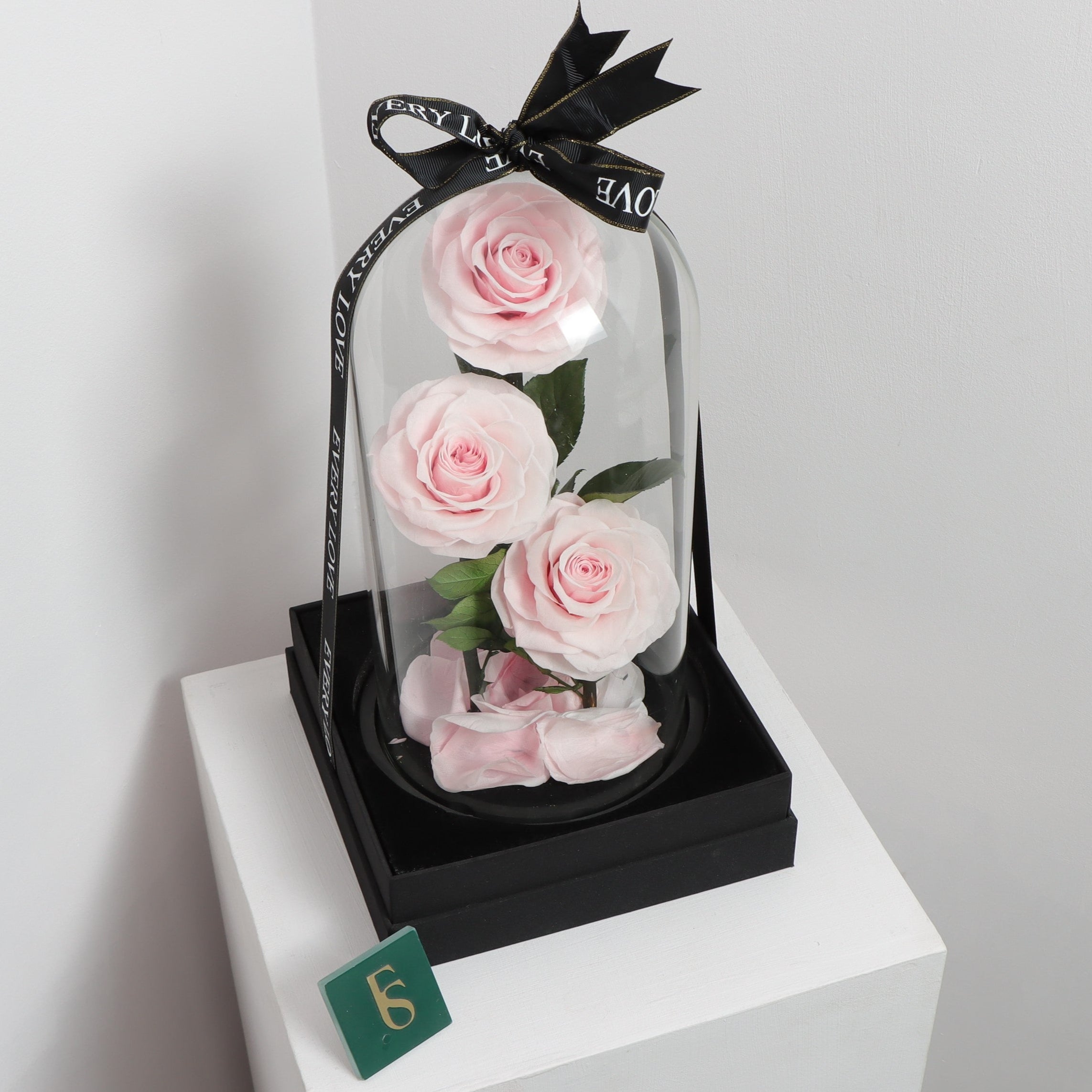 Preserved 3 Stem pink Rose Glass Dome. ( Medium ) D14 X H23cm.