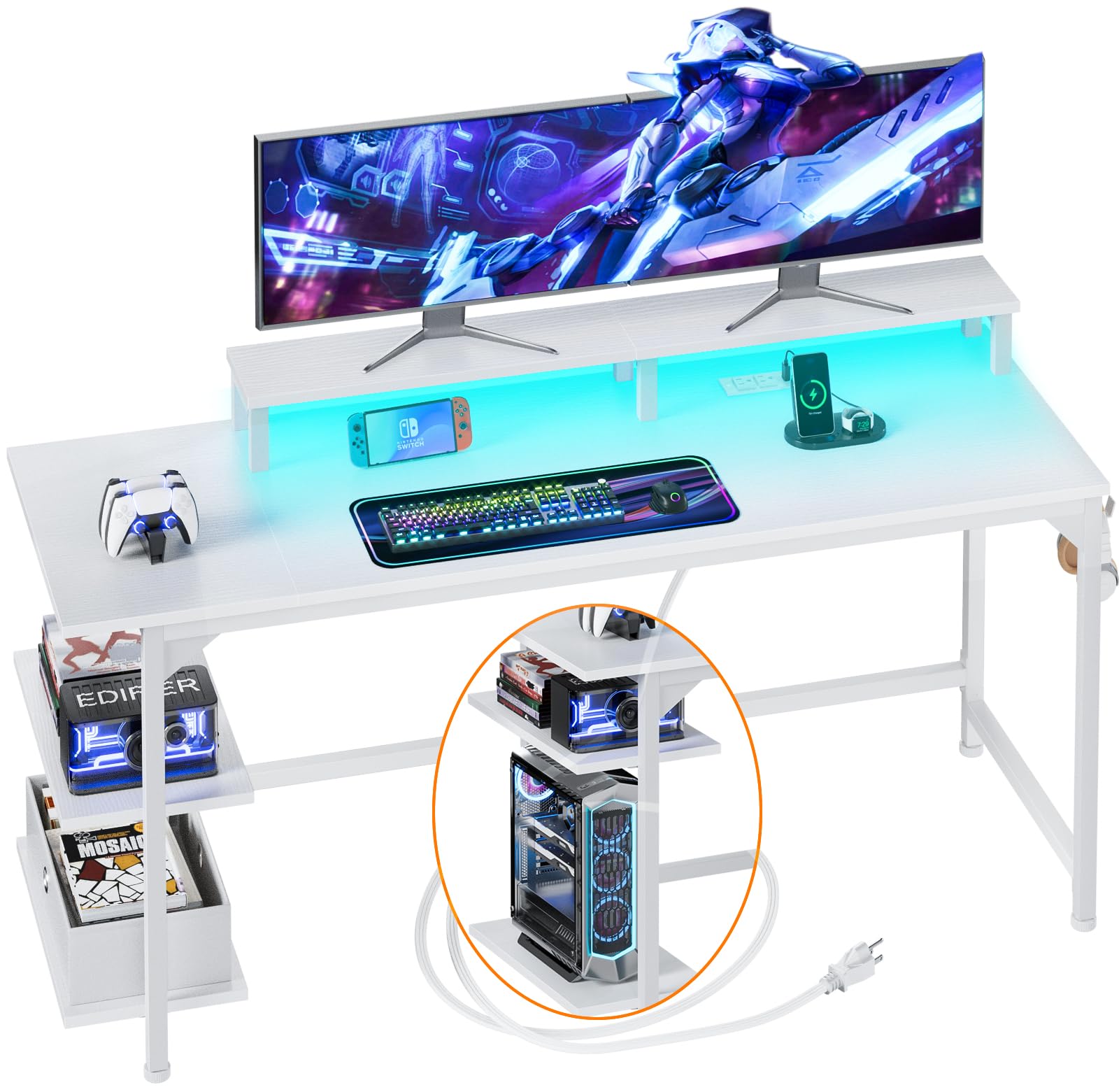- [Gaming Desk with LED Lights]: White desk is equipped with a built-in RGB LED lights strips, the 140 cm large computer desk provides 20 adjustable colors, 22 dynamic modes, 5 adjustable brightness levels, and 10 flicker frequencies which meet your different work or game scenarios.