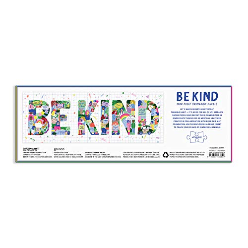 - 1,000-PIECE PUZZLE – A fun challenge, the Be Kind 1000-piece panoramic puzzle from Galison features a wide landscape image that focuses on a very important message of being kind. The finished puzzle measures 39” x 14”.