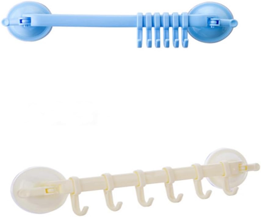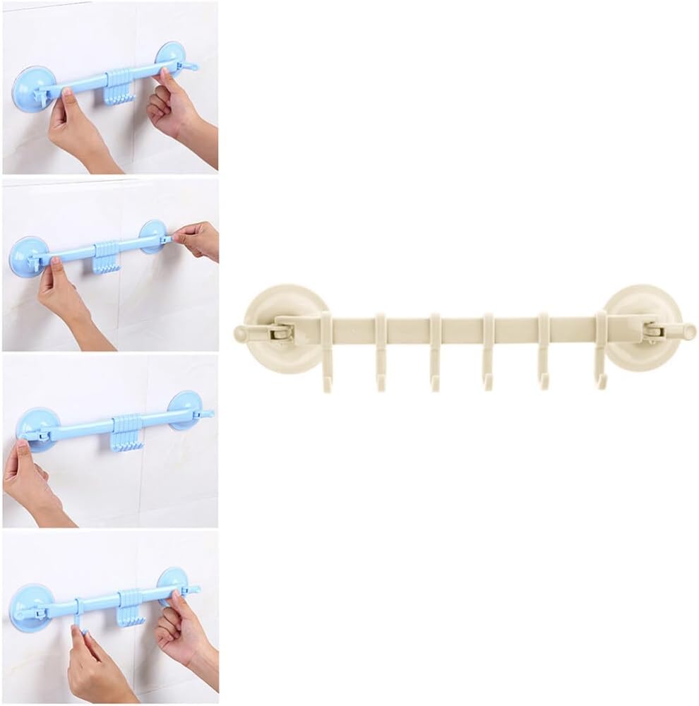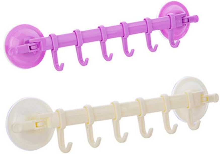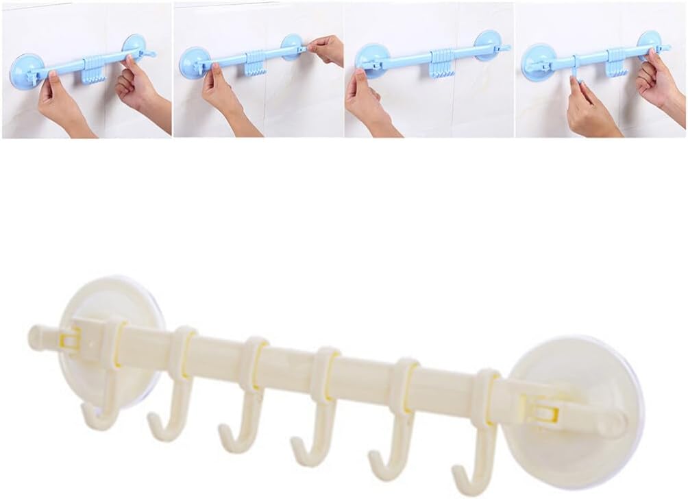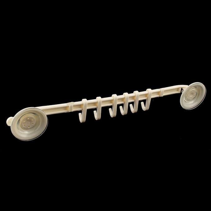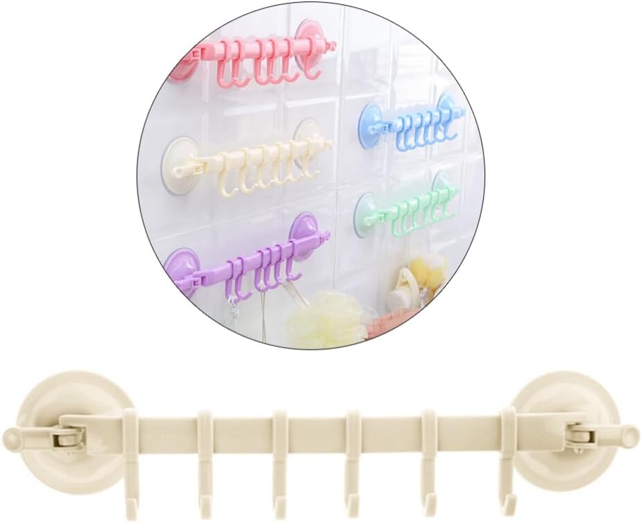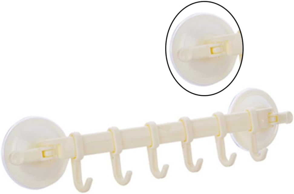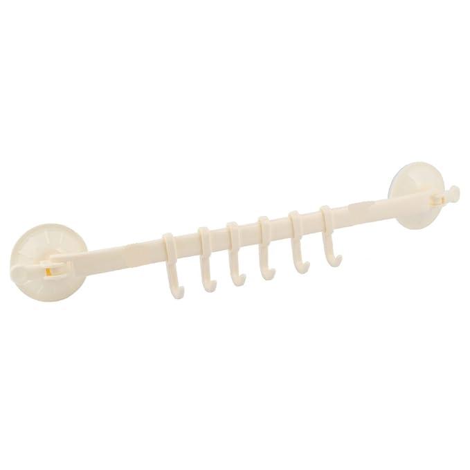 Generic Bathroom Kitchen Locking 6 Hooks Suction Cup Rack Beige