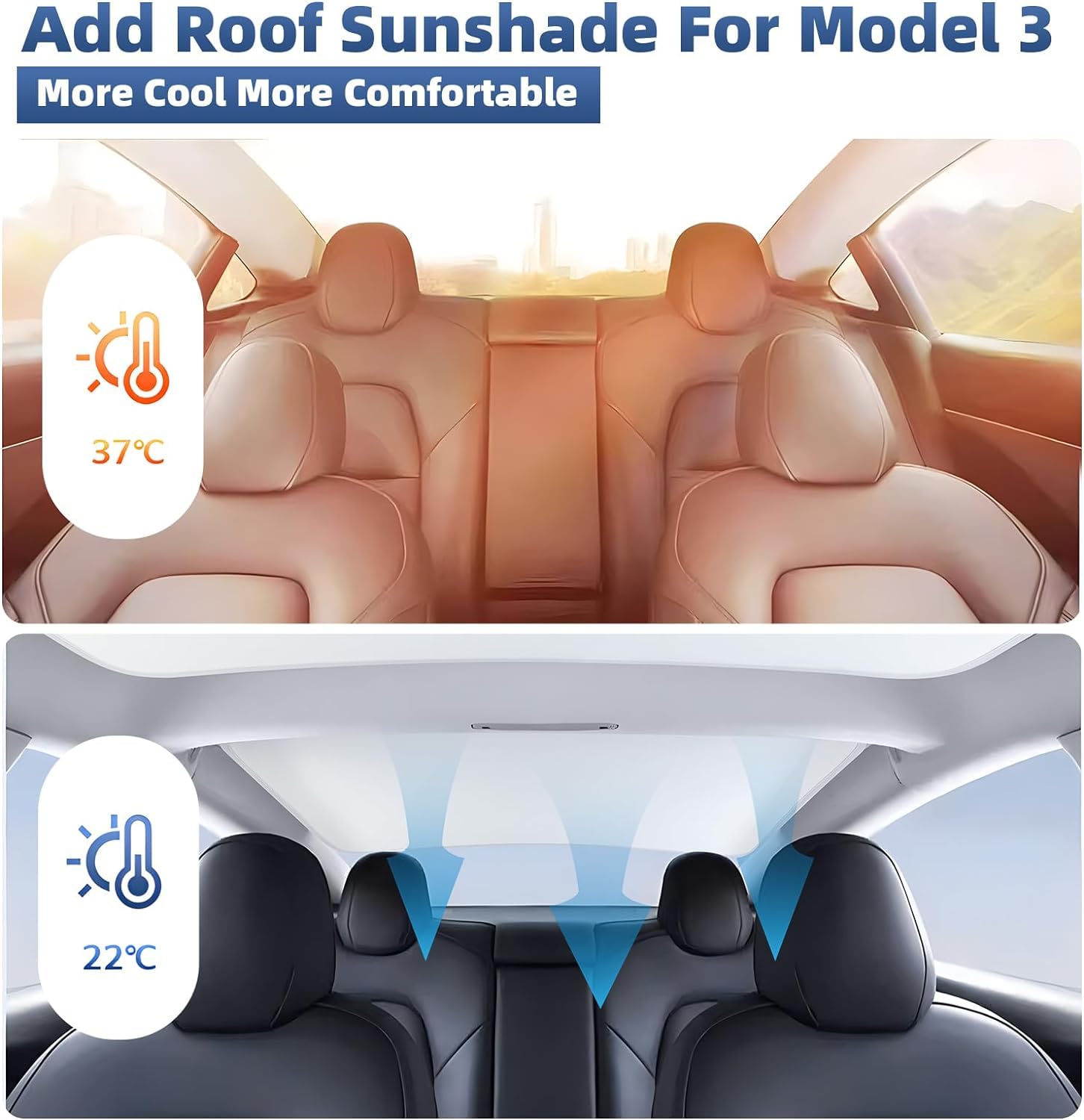 GOGOBAO 2024 Newest Sunshade Roof for Tesla Model 3 2024 No-Sag Design Roof Sun Shade for Tesla Model 3 Accessories 2024 (White)
