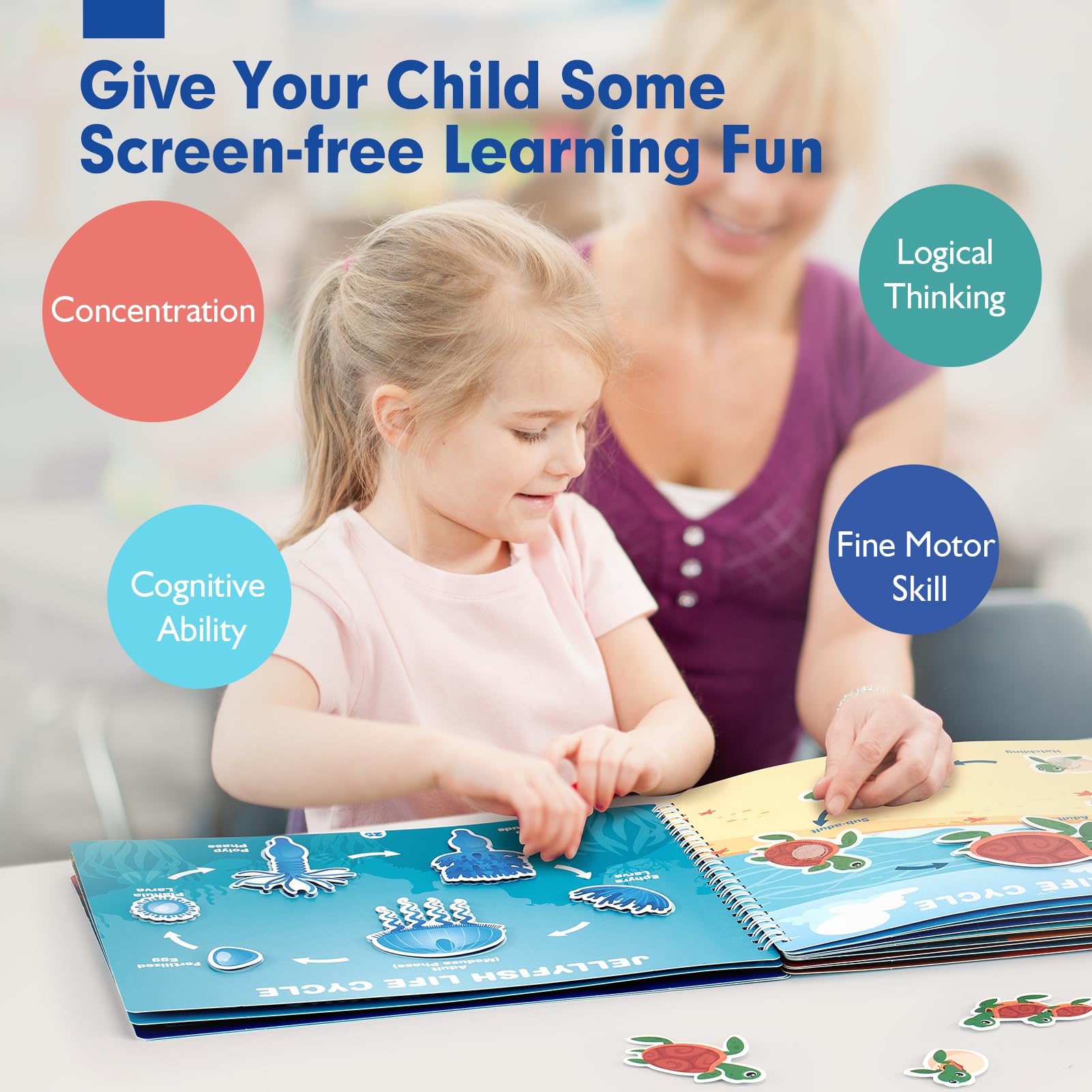 - Engaging Ocean-Themed Busy Book: Dive into learning with our ocean-themed busy book, ideal for toddlers and preschoolers aged 3-5. Featuring 15 core educational concepts including months, seasons, week & weather, time, alphabet, numbers, colors, shapes, size, direction, emotion, dress-up, vehicles, life cycles, and marine life, it's the perfect gift to stimulate young minds