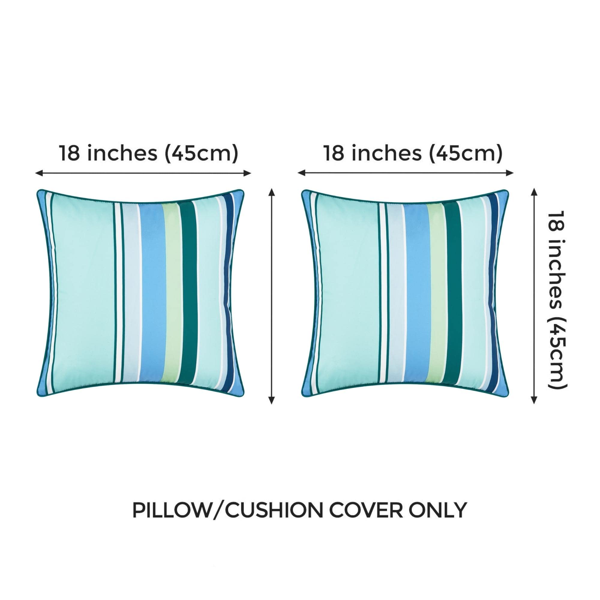 - Features: Throw Pillow Covers; Sold as 2 Pieces; Package includes: (2) (45x45cm); Same pattern on front and back; Invisible zipper on bottom; Weather Resistant Canvas;