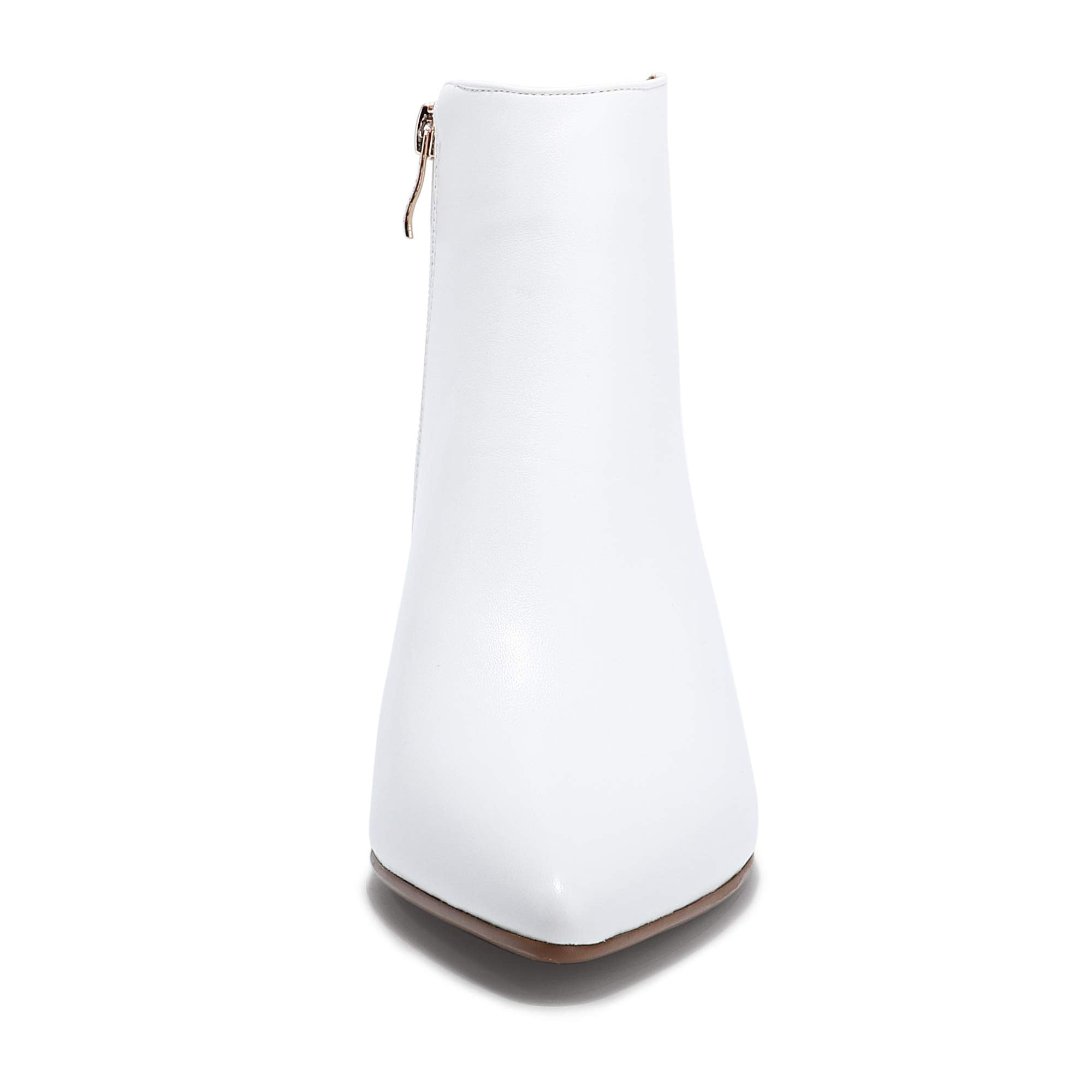 - LOW KITTEN HEEL & POINTED TOE ANKLE BOOTS: Women dressy booties with small heels, provide long-lasting comfort and steady steps. Fashion pointy toe makes a sense of forward extension, both modern and retro.