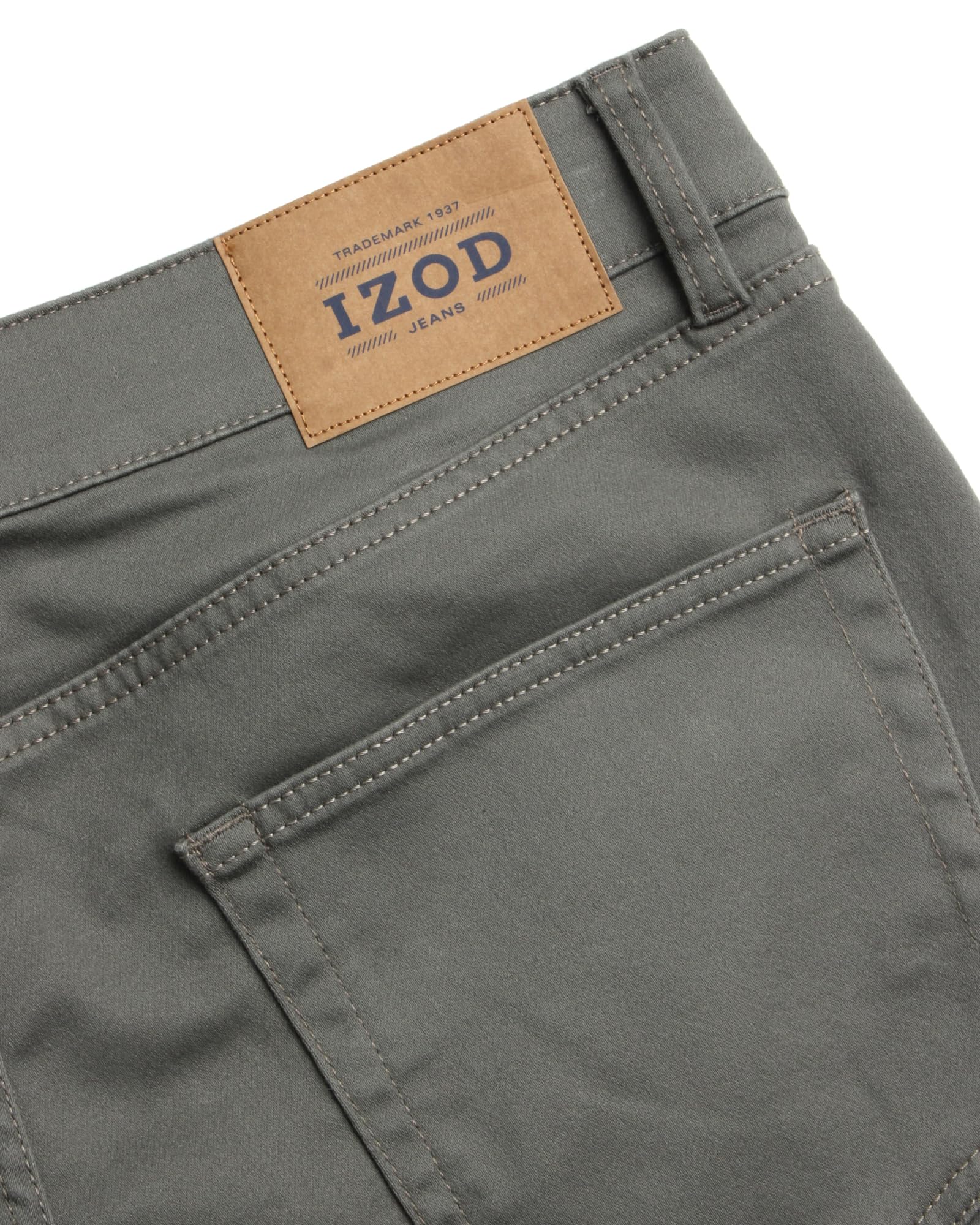 - OFFICIALLY LICENSED IZOD: Men's Comfort Stretch Denim Relaxed Fit Jeans; Bold, colorful, and always comfortable, IZOD is known for fresh American style with a weekend state of mind