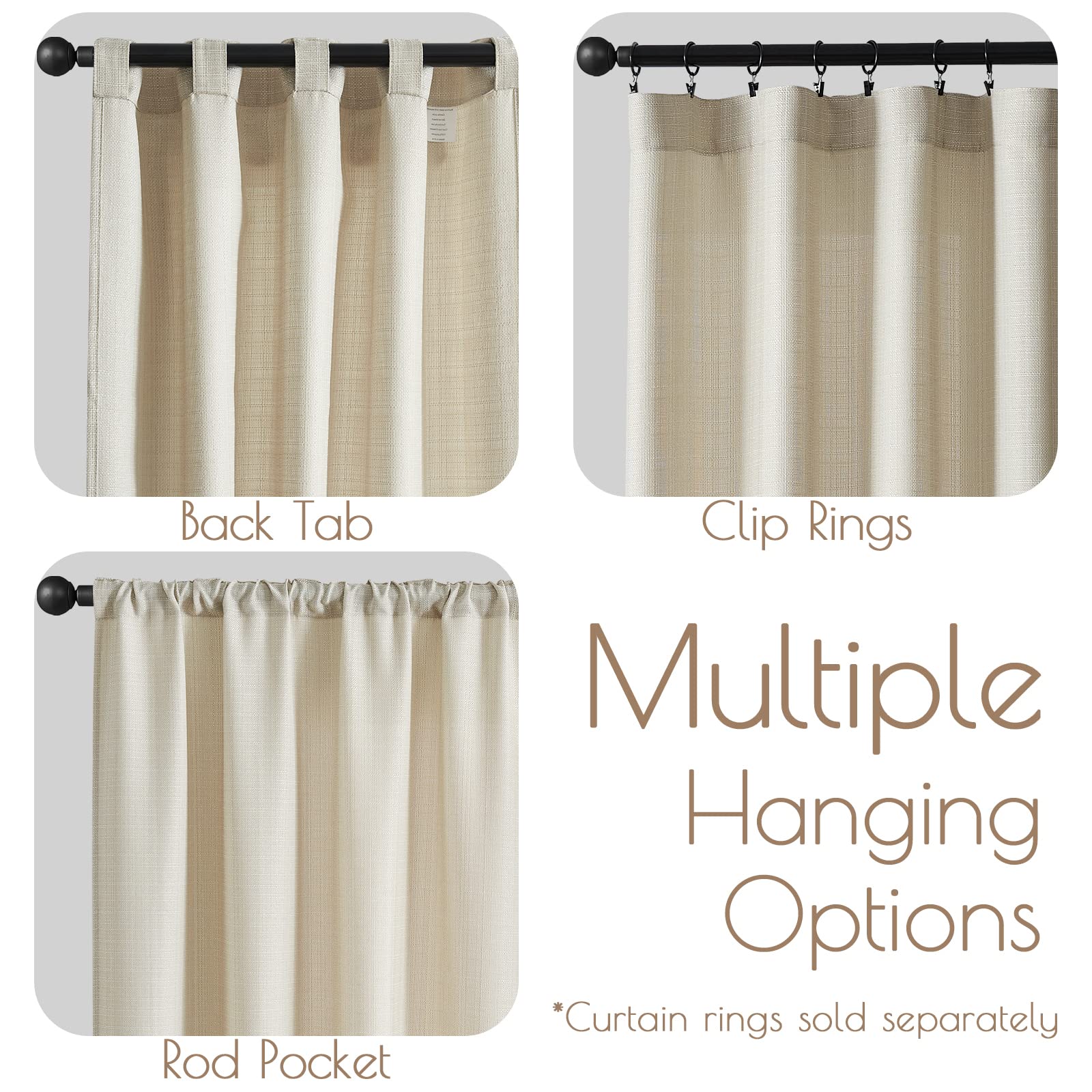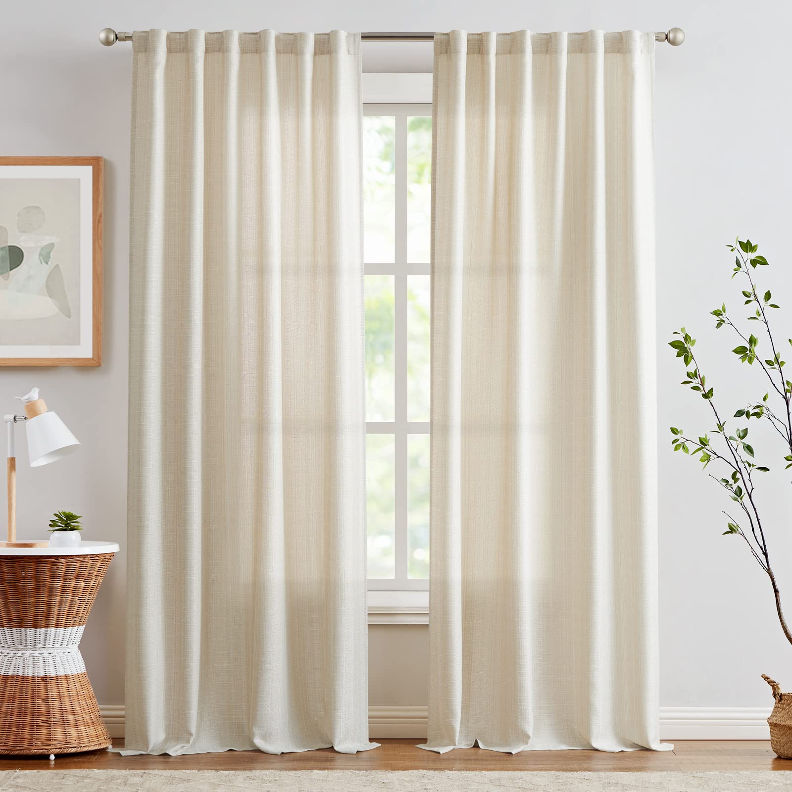jinchan Curtains for Living Room Bedroom Linen Textured Curtains 213 cm Long 2 Panels Beige Farmhouse Curtains Casual Weave Back Tab Drapes Light Filtering Window Curtains Set Heathered Beige