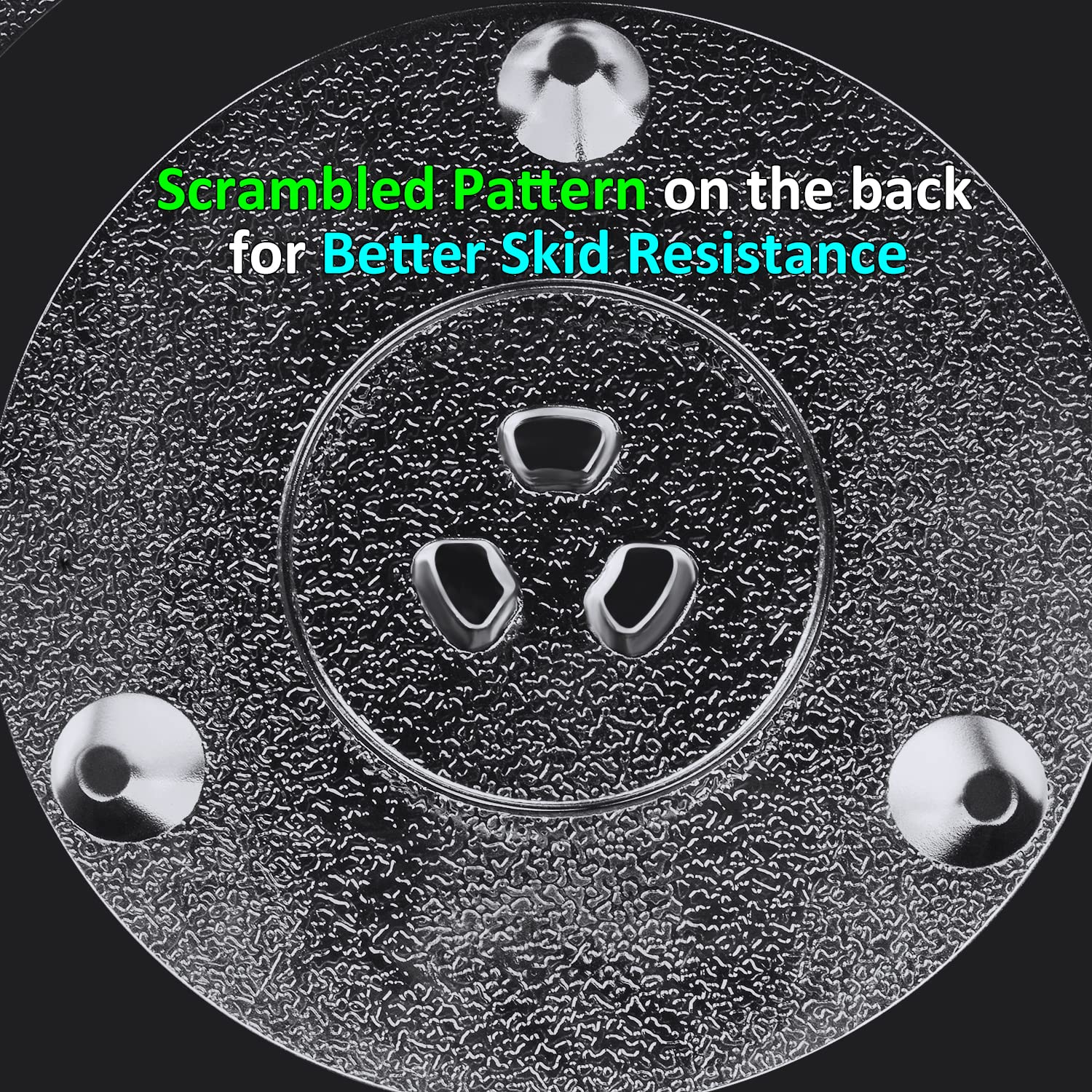 - Made of high quality heat-resistant glass, Scrambled pattern design on the back to provide better skid resistance, and Arc design to prevent you from accidental cuts. This sturdy and robust glass plate is an ideal replacement for your cracked, damaged or broken plate.