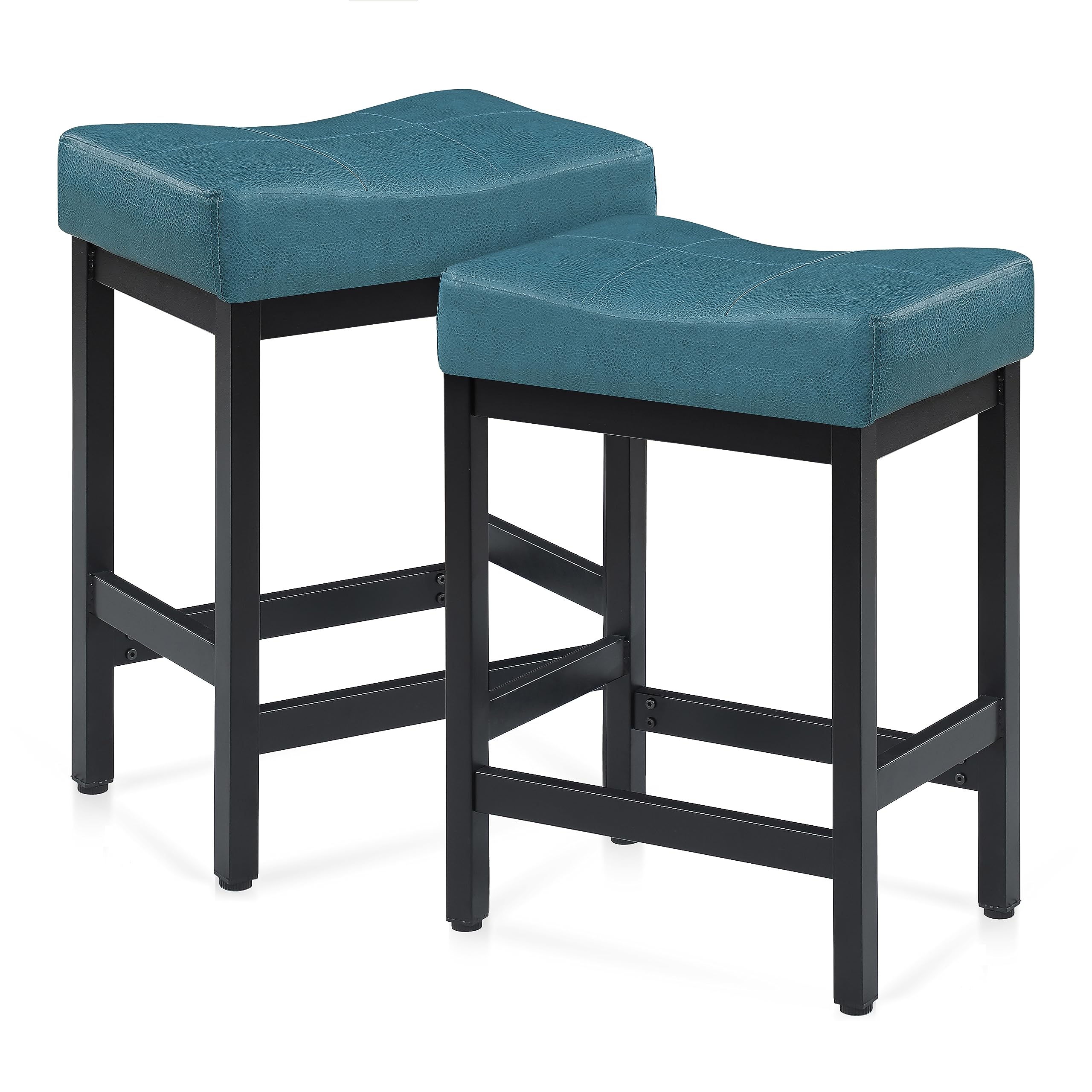 KATDANS Bar Stools Set of 2, 60 cm Counter Height Saddle Bar Stools, Green
