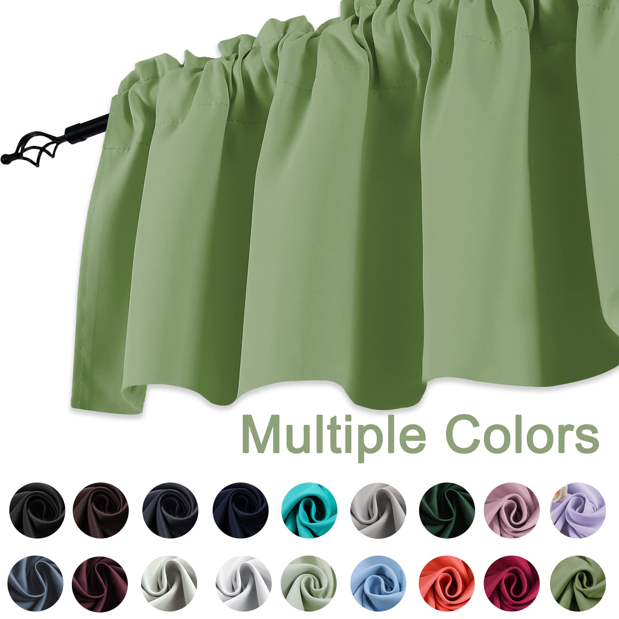 KEQIAOSUOCAI Sage Green Window Valance 72 Inch by 16 Inch for Kids Room - Rod Pocket Room Darkening 16 Inch Curtain Valance for Bedroom Living Room Basement 1 Panel 72Wx16L