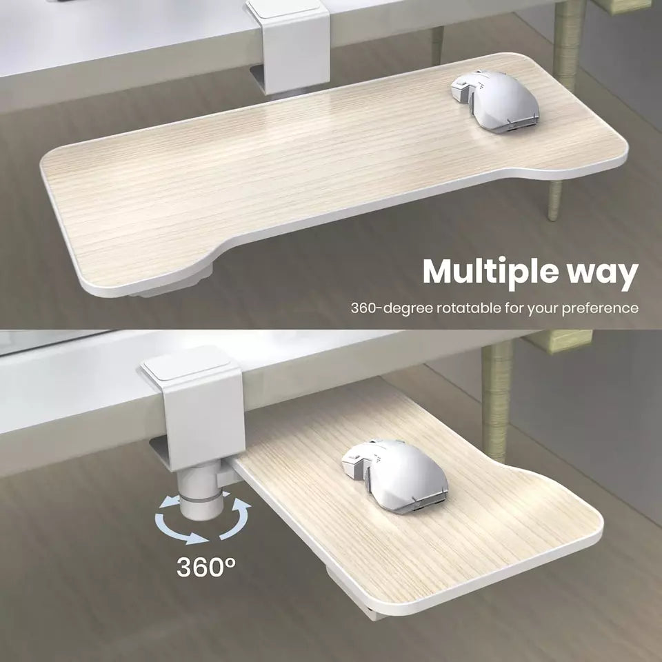 - ✌️【360-degree Rotating Tray】With a 360° rotating design, the keyboard tray can freely rotate a certain angle to meet your office needs, or you can rotate 90° (only use the mouse to browse the web or place a one-hand keyboard on it for games) It can be rotated to hide under desk when we not use,convenient storage does not take up space.