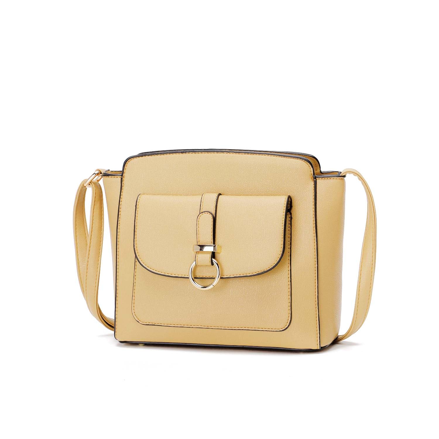 - This shoulder bag is made from vegan faux leather. It has a flap pocket, a back-slip pocket, and feet to protect its bottom. It's an ideal everyday bag with room for everything you need.