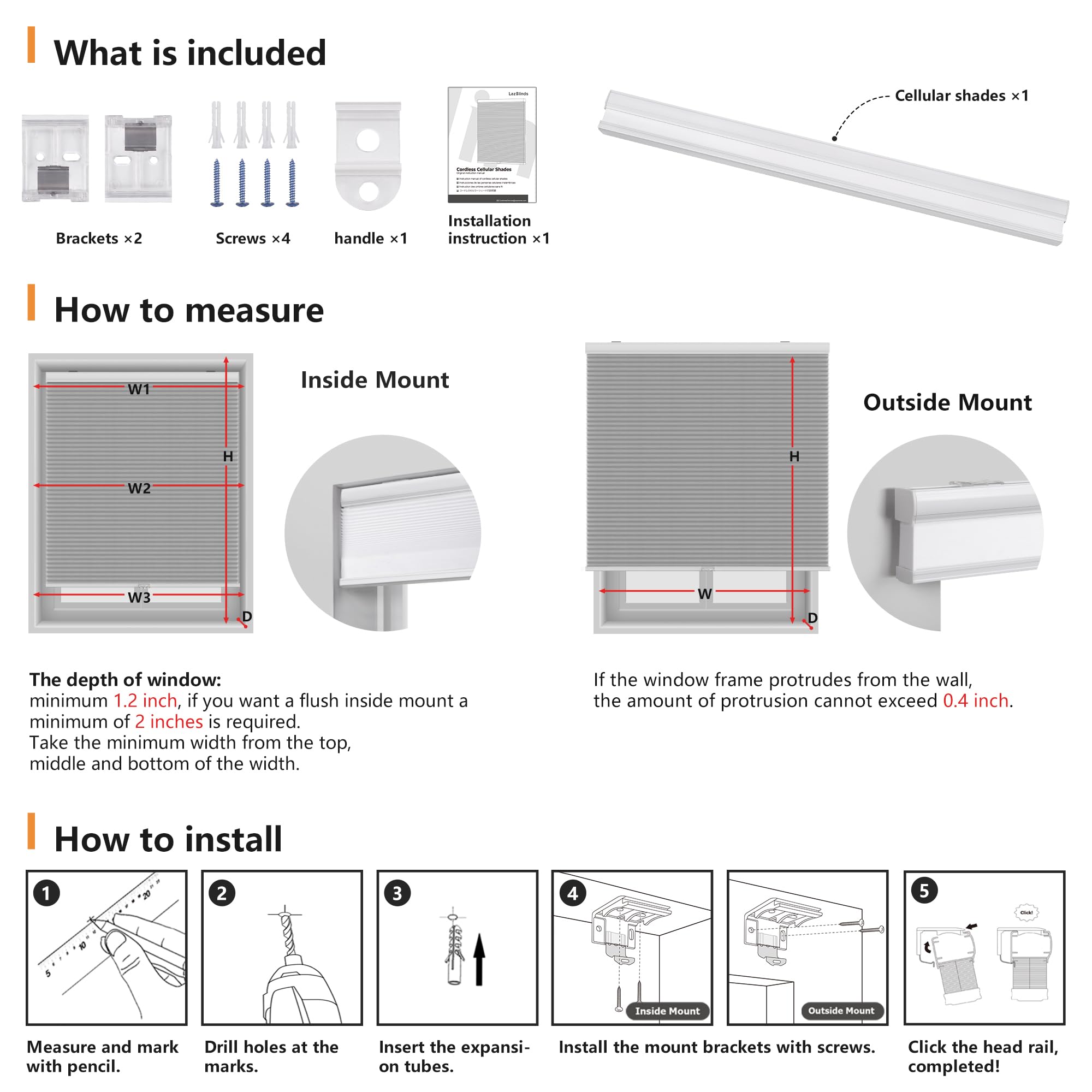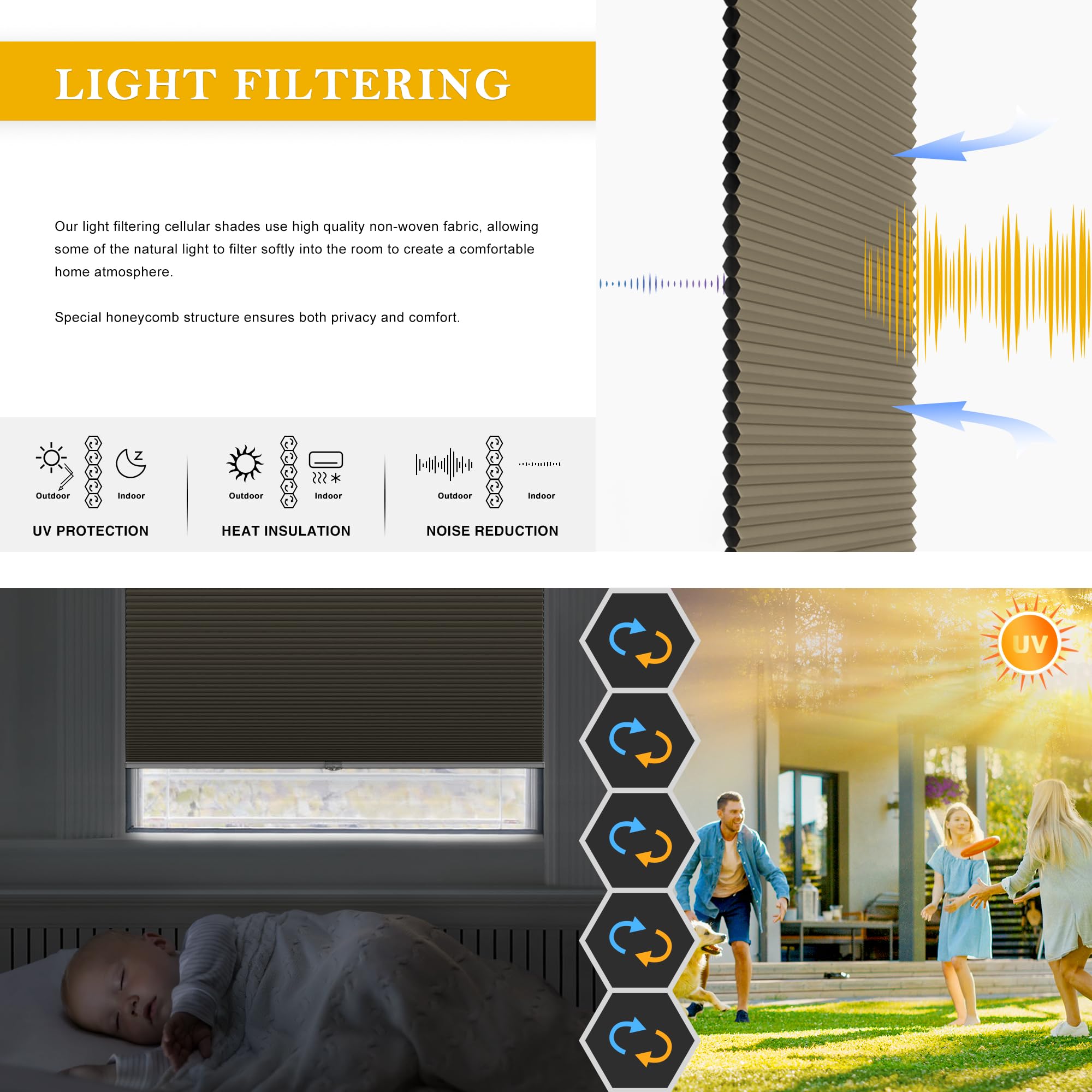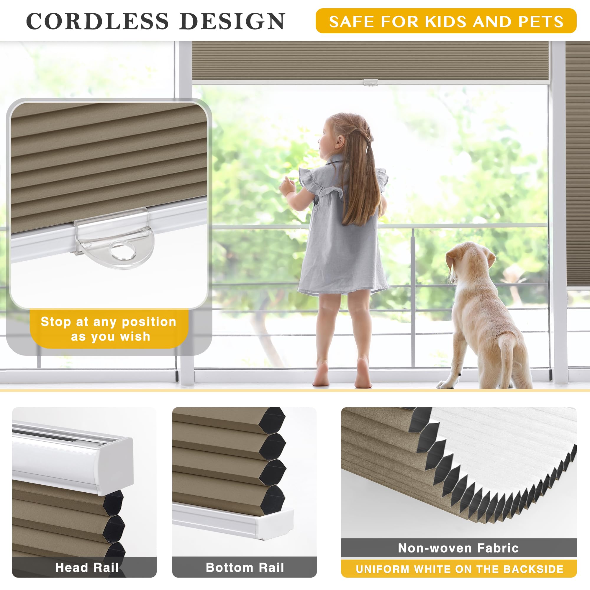 LazBlinds Cordless Cellular Blackout Honeycomb Shades with 4 cm cells,Size 86 cm W x 183 cm H Dark Coffee