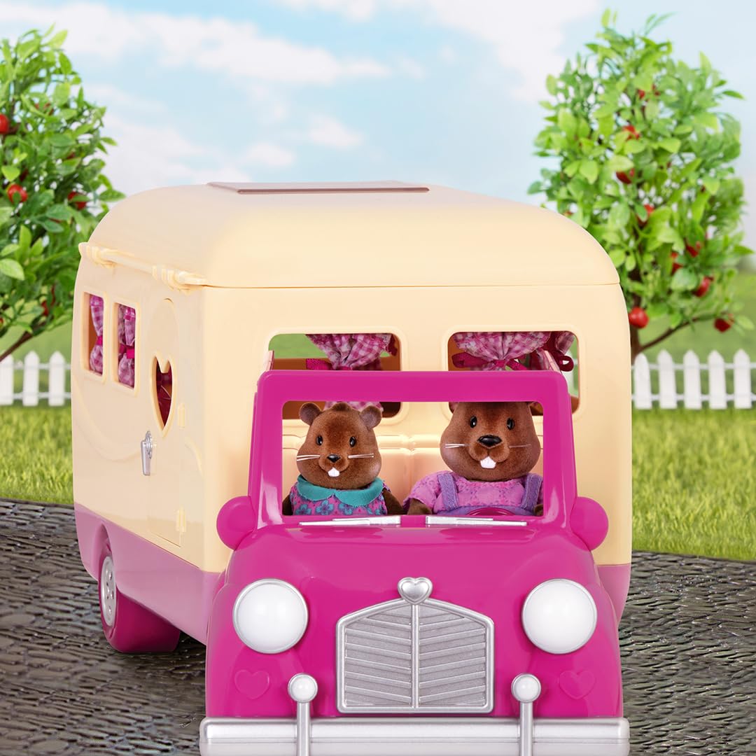 - Camper Playset: Li'l Woodzeez pink play camper with accessories.
