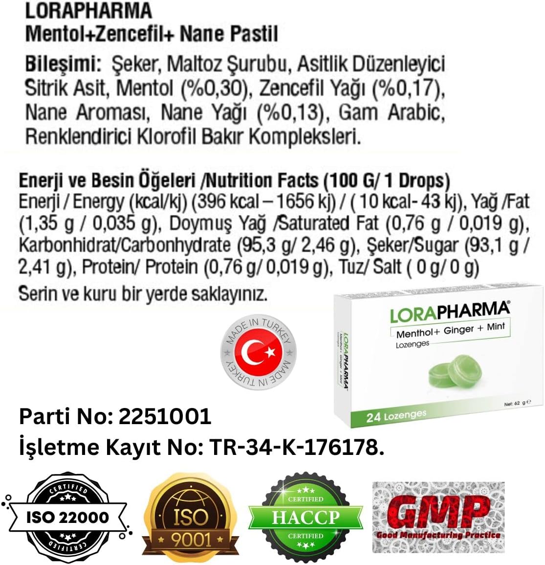 is a soothing lozenge that combines the refreshing taste of menthol, the warm spiciness of ginger, and the invigorating essence of mint. Formulated to provide relief for sore throats and freshen breath, these lozenges are an ideal remedy for combating discomfort and keeping your throat feeling refreshed.