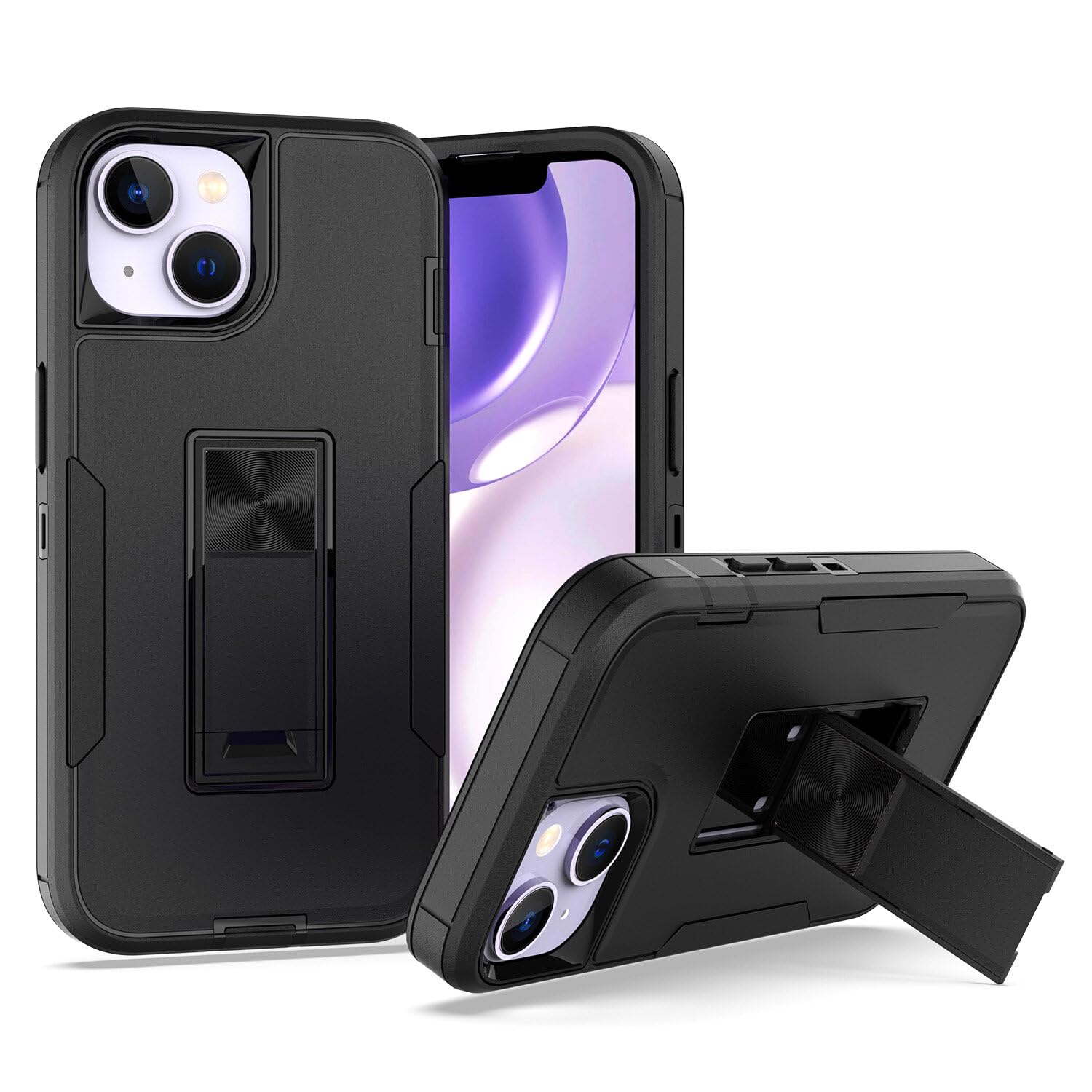 Mavis's Diary Phone Case Compatible for iPhone 15 Case Silicone Cover with Foldable Holder Kickstand Bumper, Heavy Duty Protection Solid Shockproof Protector Magnetic Car Mount-Black