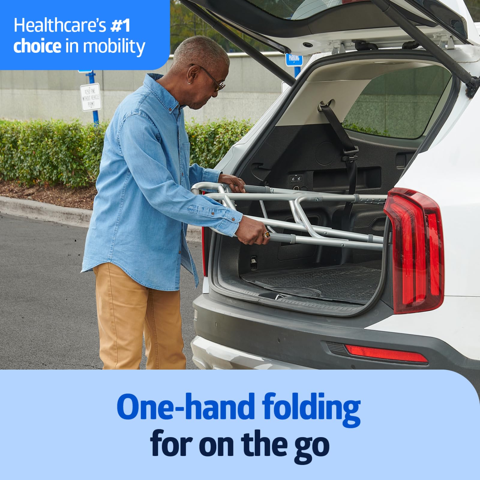 - LIGHTWEIGHT. EASY-FOLD DESIGN: Lightweight walker weighs just 2.7 with 2-button mechanism that makes it easy to fold and for convenient storage or travel
