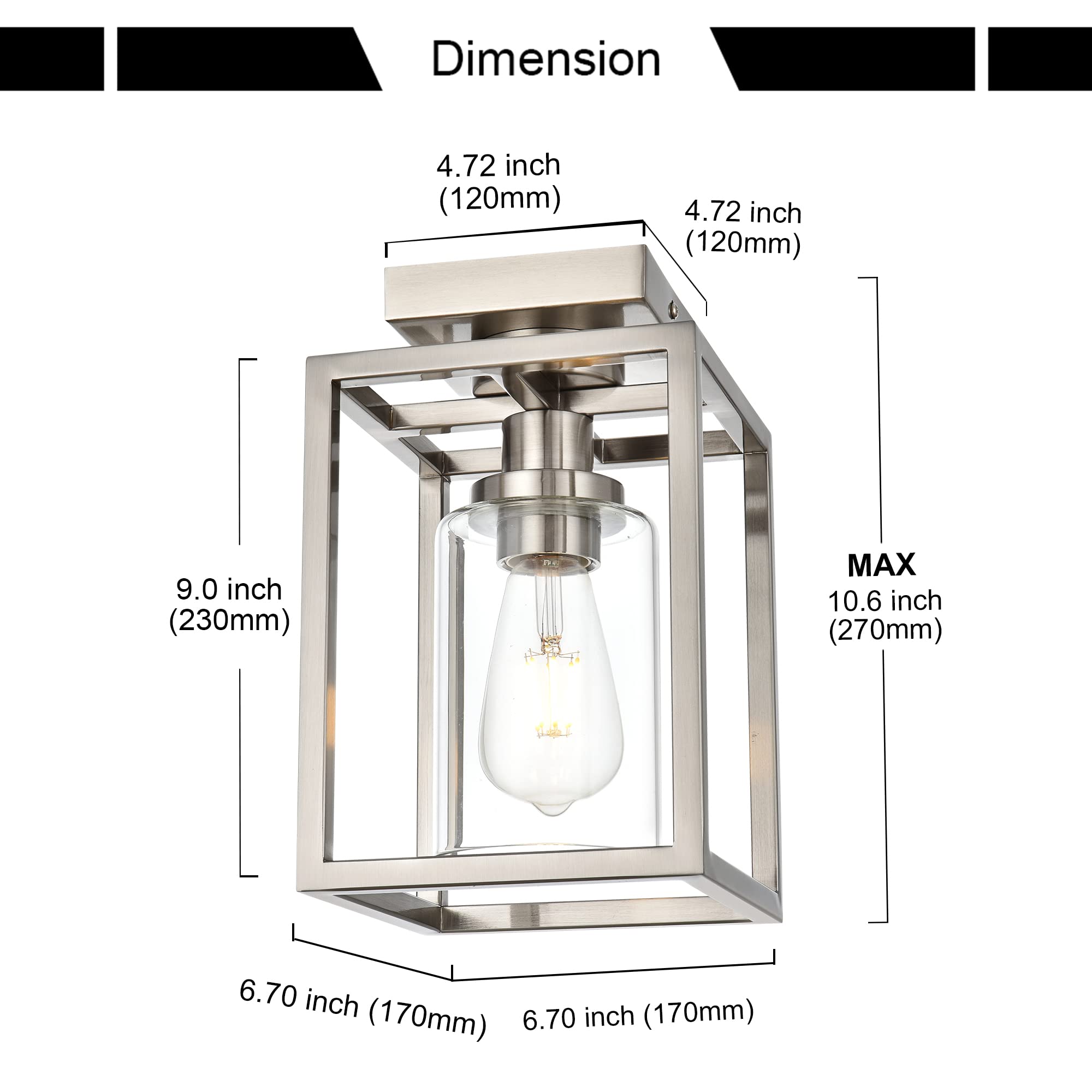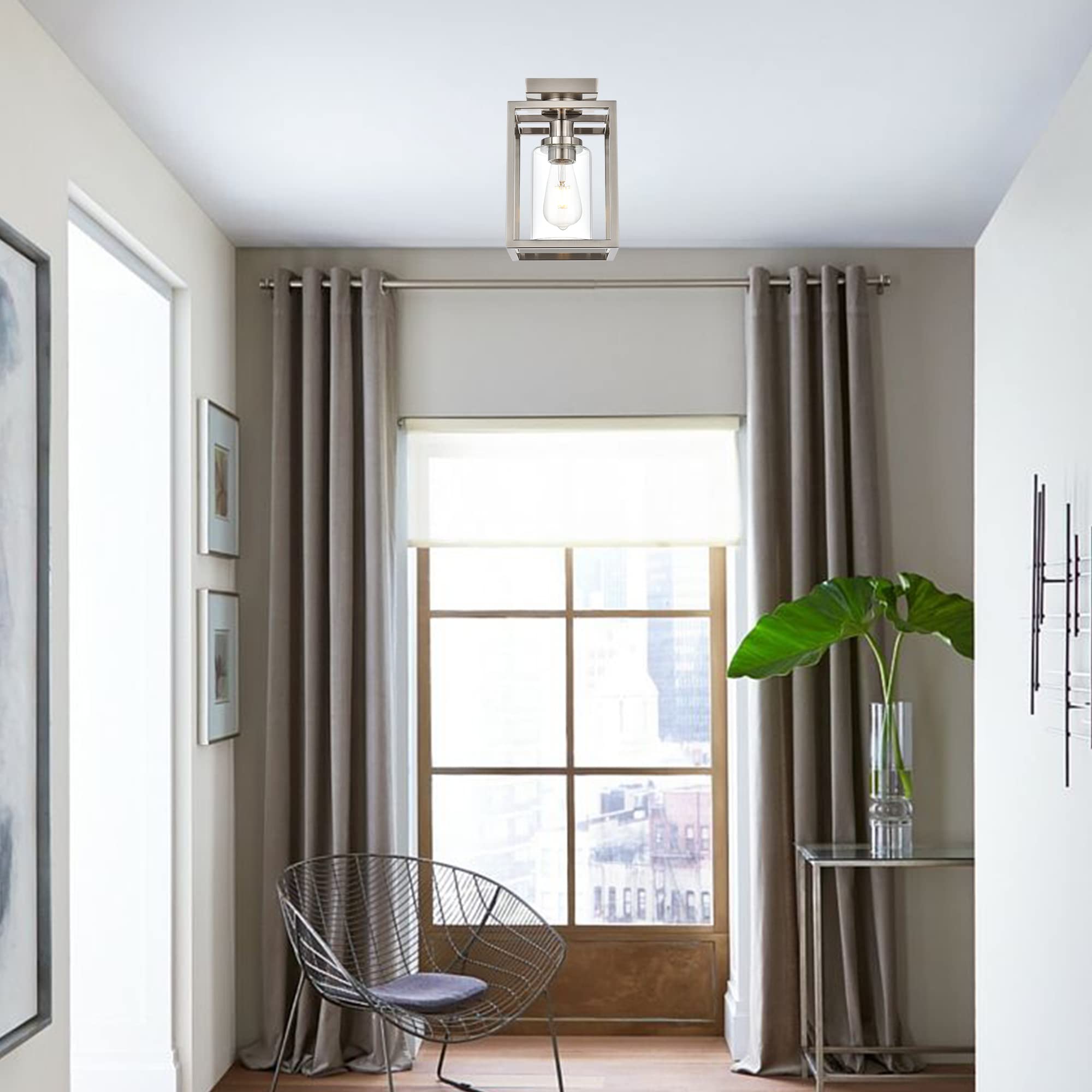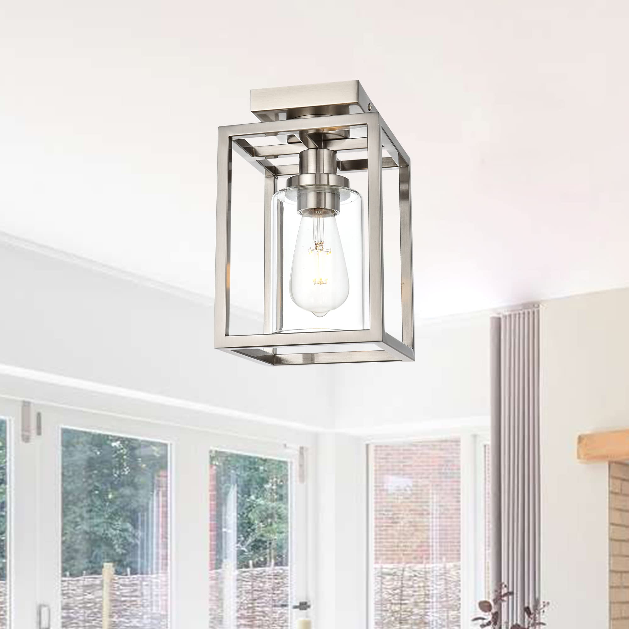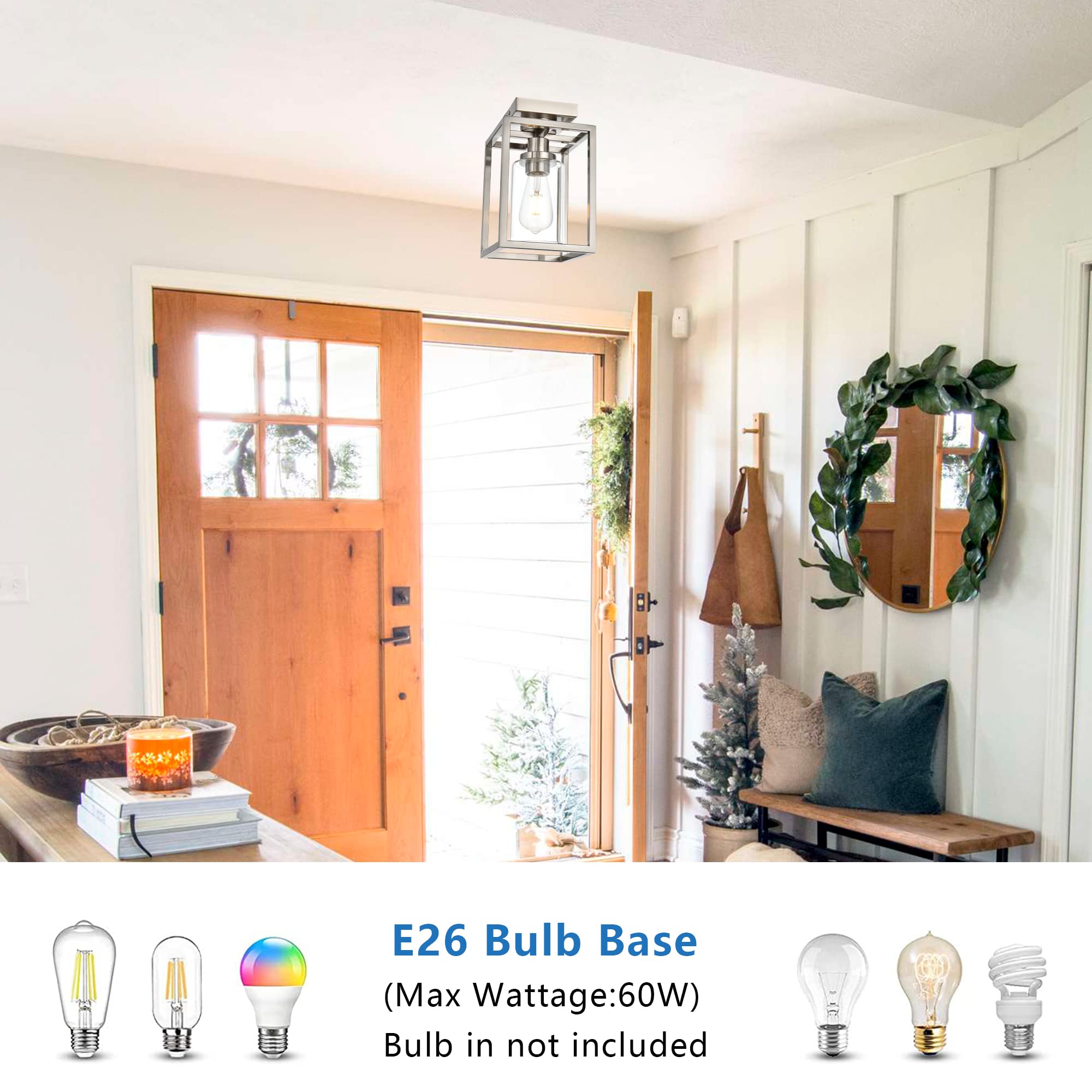 MELUCEE Semi Flush Mount Ceiling Light Brushed Nickel Finish, 1-Light Industrial Island Light Geometric Metal Cage Farmhouse Ceiling Light Fixture for Entryway Porch Bedroom Dining Room