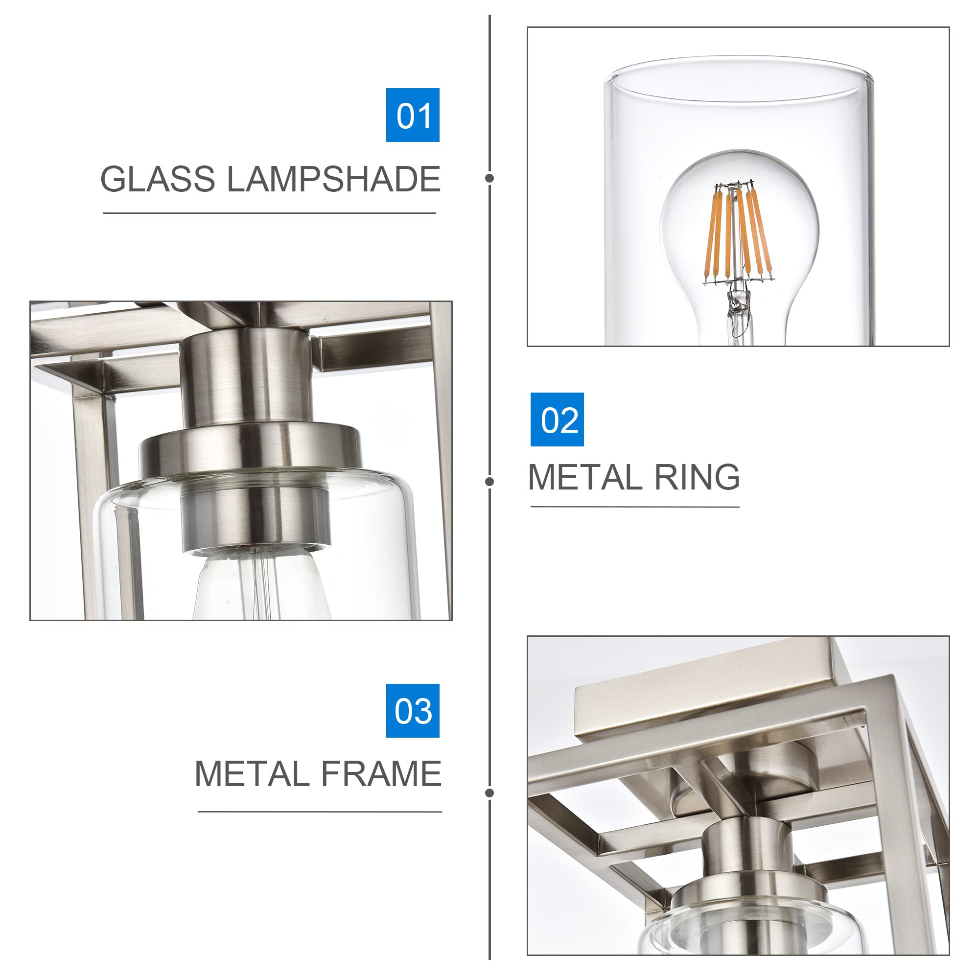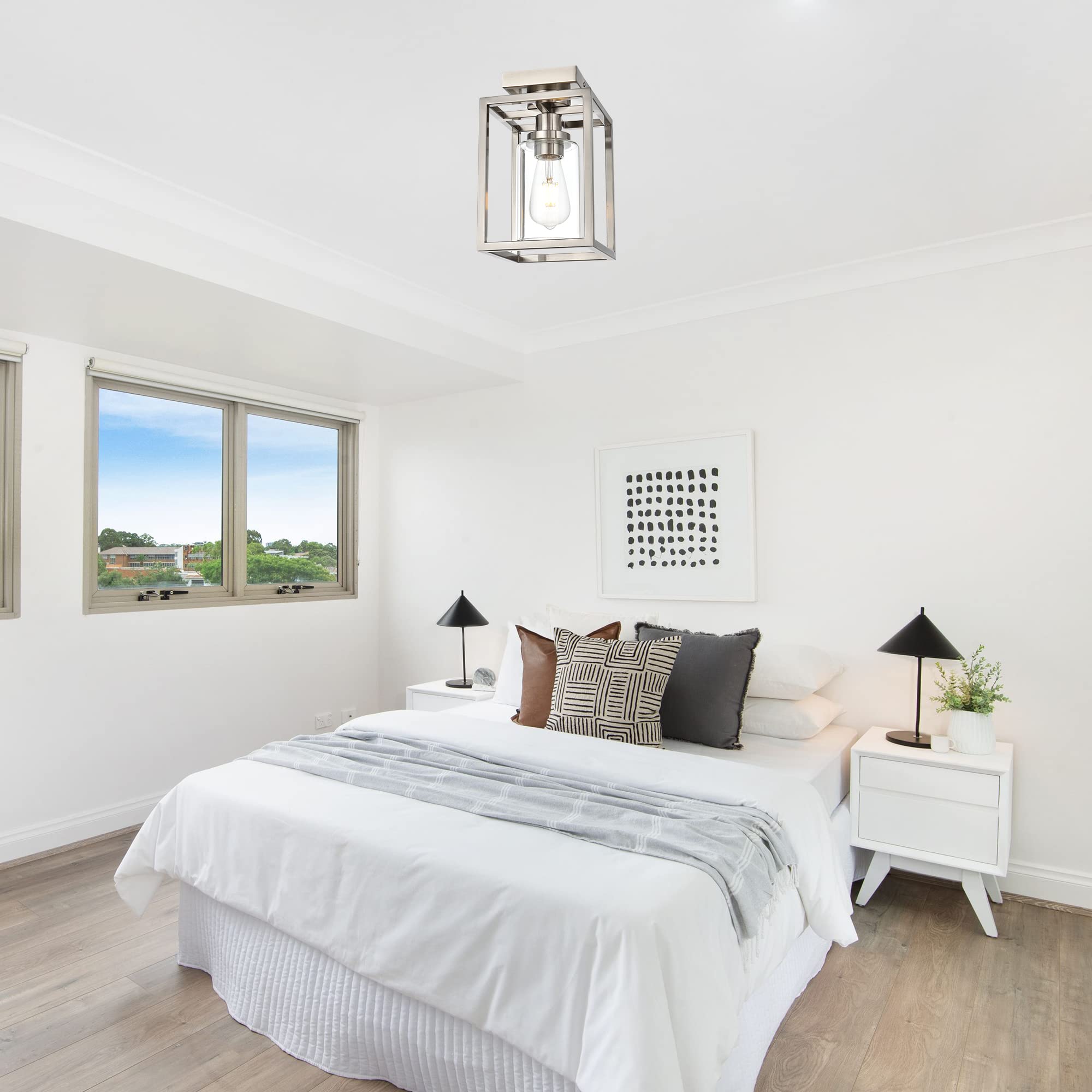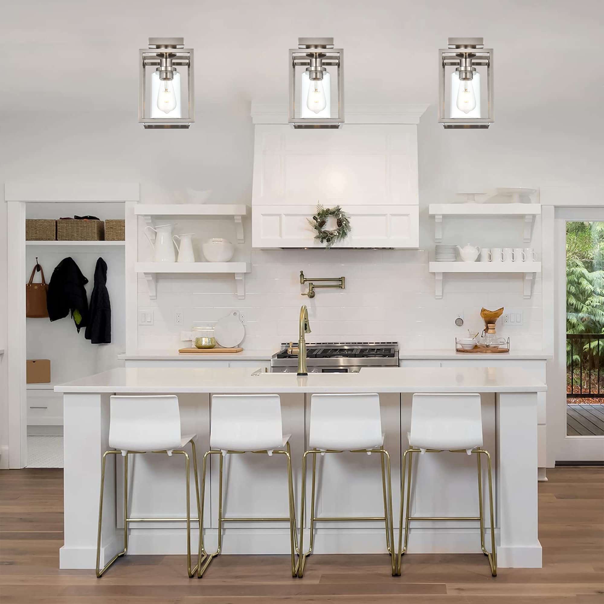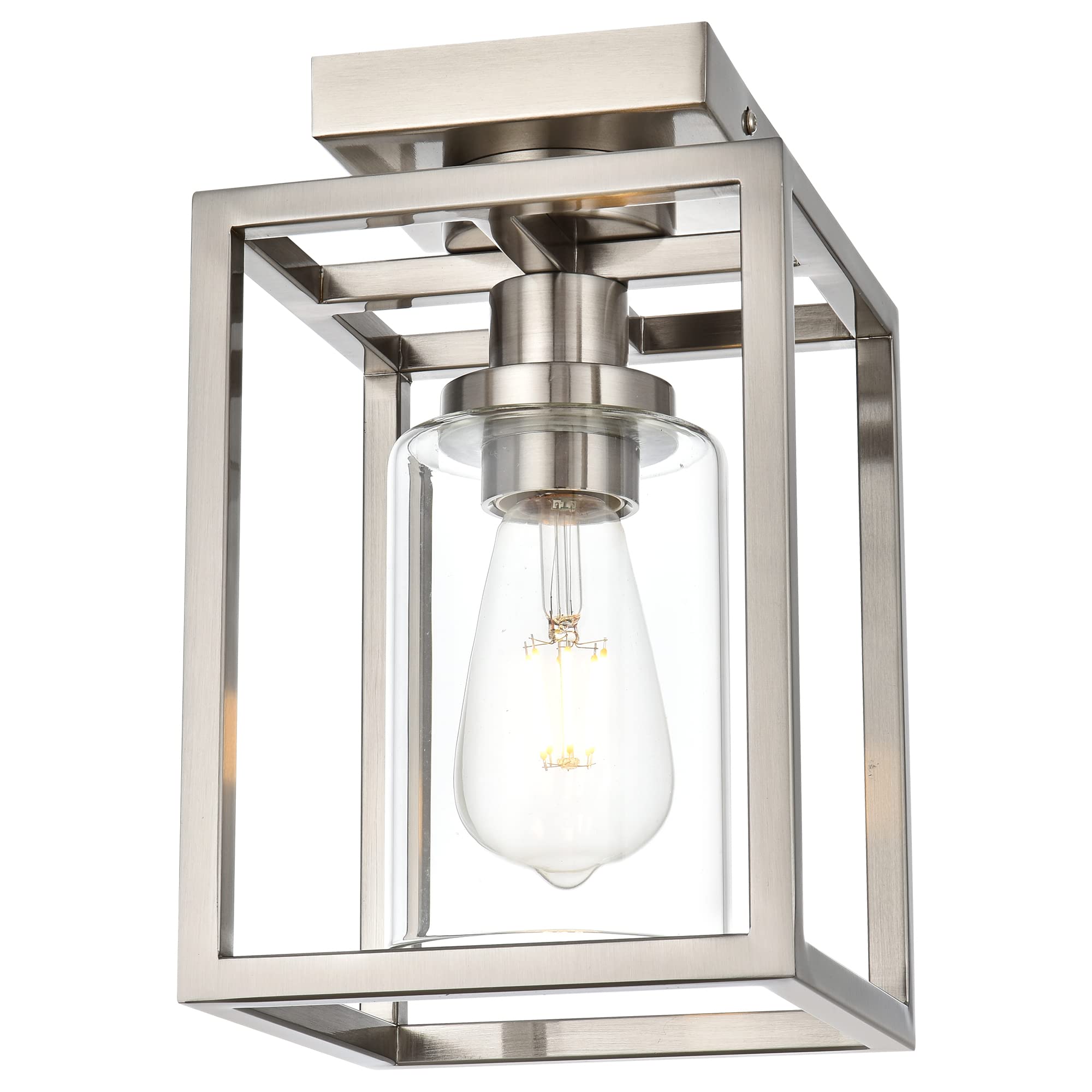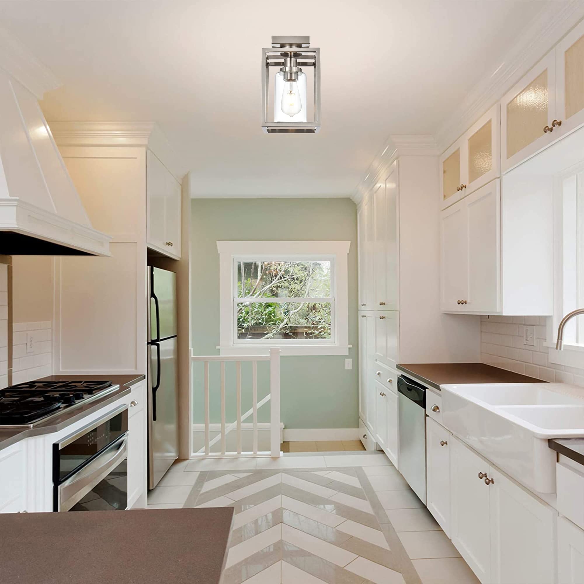 MELUCEE Semi Flush Mount Ceiling Light Brushed Nickel Finish, 1-Light Industrial Island Light Geometric Metal Cage Farmhouse Ceiling Light Fixture for Entryway Porch Bedroom Dining Room