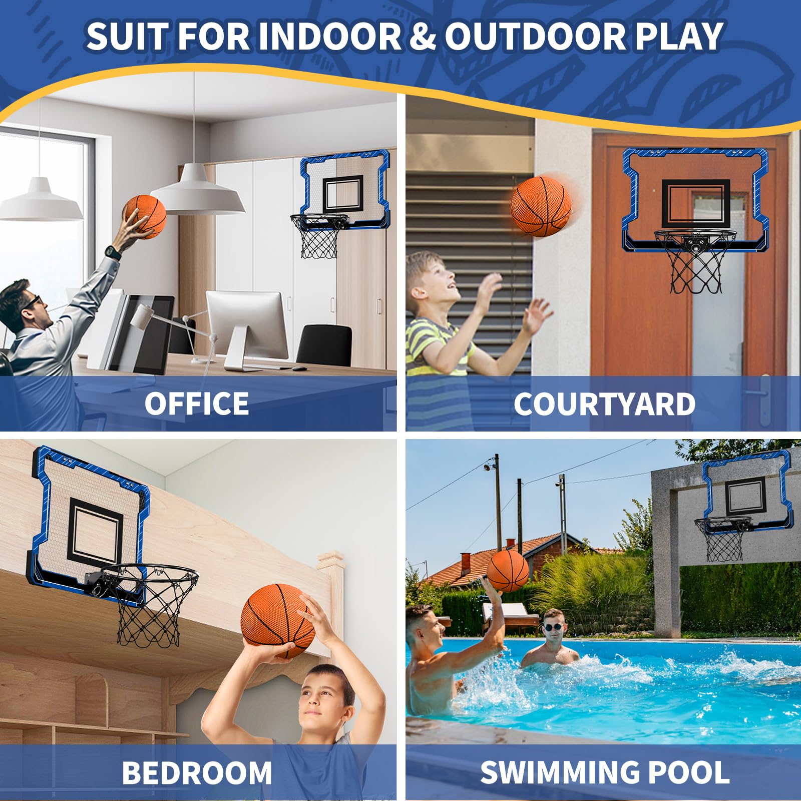 - [Ideal Gift for Basketball Fans]- This mini basketball hoop is a great gift choice for kids and adults. Mini basketball hoop not only cultivate children's interest in sports and enhance their physique, but also allow adults to enjoy a stress-relieving break as well. Come play a basketball game with your family or friends!