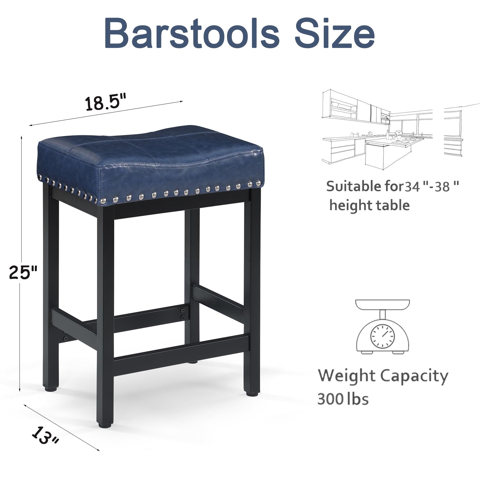 OUllUO Blue Bar Stools Set of 2 – a perfect blend of style, comfort, and durability for your kitchen or island seating. Crafted with meticulous attention to detail, these 24" Counter Barstools are designed to elevate your space with a touch of modern sophistication. Premium Comfort: Enjoy a plush seating experience with the padded saddle design and upholstered faux leather cushion. The ergonomic construction provides optimum support, making these barstools ideal for extended conversations or casual dining. Stylish Design: Enhance the aesthetic of your kitchen with the sleek and contemporary design of the OUllUO blue Bar Stools. The vibrant blue color adds a pop of personality, while the nailhead trim detailing around the edges adds a touch of elegance that effortlessly complements any decor. Robust Construction: Built to last, these barstools feature a sturdy metal base that ensures stability and longevity. The modern metal construction not only provides a strong foundation but also adds an industrial-chic vibe to your space. Versatile Sizing: With a height of 24 inches, these counter barstools are the perfect height for standard kitchen counter top 33-38 inch height. The set of 2 allows you to create a cozy and inviting seating arrangement for you and a friend, enhancing the social atmosphere in your home. Easy Assembly: Setting up your stylish kitchen seating is a breeze with the easy-to-follow assembly instructions included. Spend less time assembling and more time enjoying the comfort and style of your new barstools.