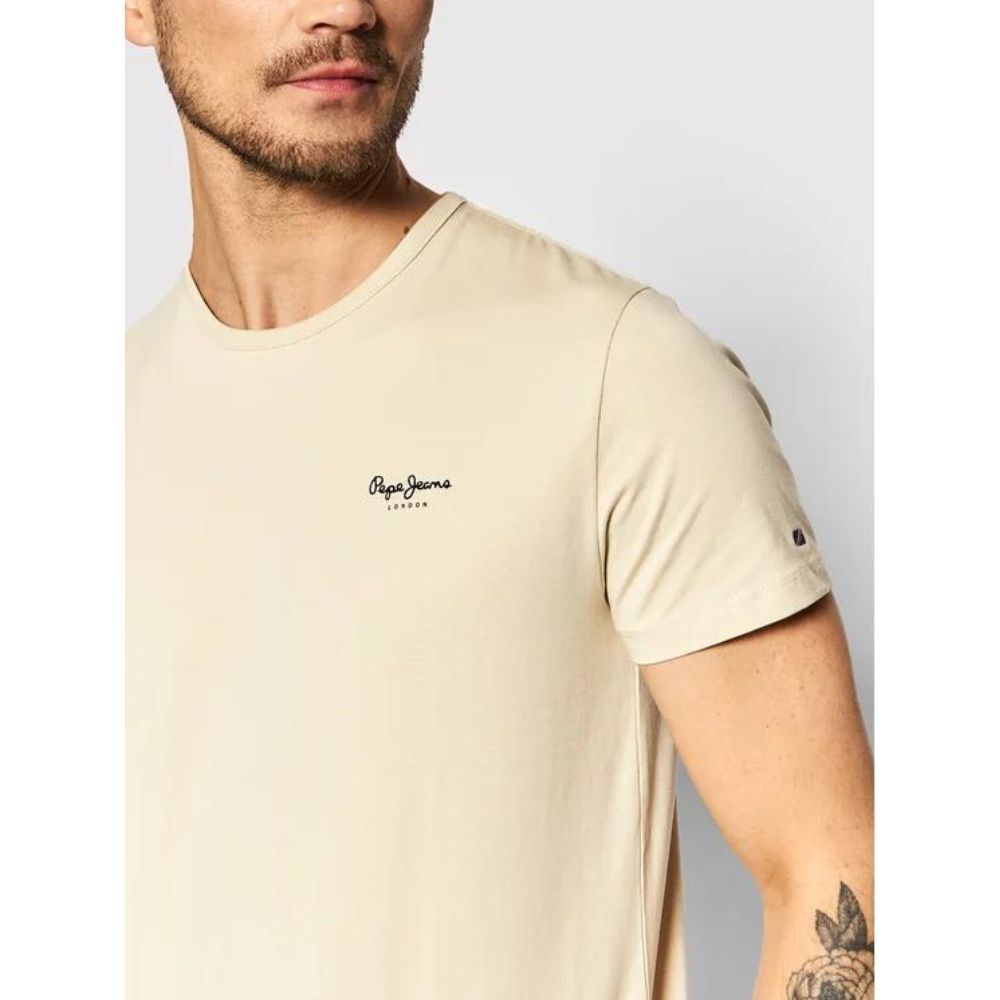 Embrace Effortless Cool with PEPE JEANS Original Basic 3 PM508212 Beige Slim Fit T-Shirt