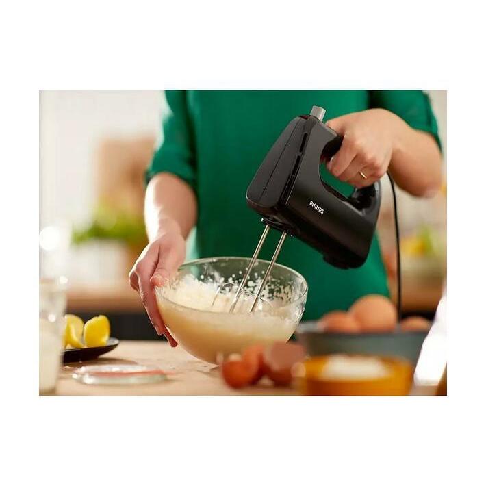 The Philips 300W Daily Collection Mixer (HR3705/10) is a versatile kitchen appliance designed for efficient and effortless mixing tasks. With its sleek black design and compact size of 8.4 x 18.6 x 15.4 cm, it fits seamlessly into any kitchen setting.