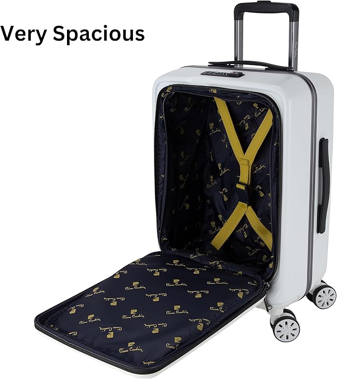 Pierre Cardin 20 Inch laptop trolley bag Strong shell Front Pocket with Laptop Compartment rolling laptop bag for business and Travel, TSA Approved Lock (PC86326-White)